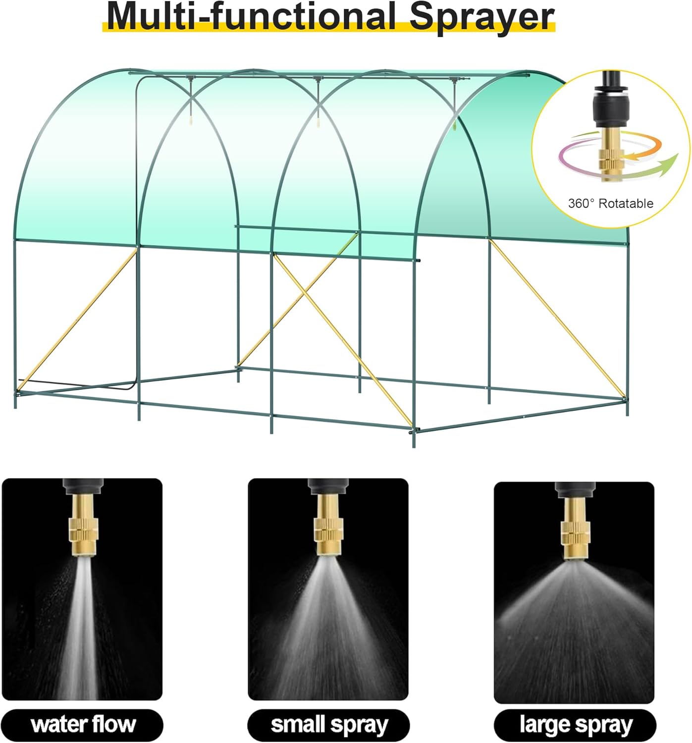 - Greenhouse With Watering System: The Walk-in tunnel greenhouse for outdoors with sprinkler can take care of all the plants in 360°, which saves more water and time than ordinary garden greenhouses, and it can also be used to control the temperature and humidity inside the greenhouse to ensure that the plants have the best growing environment