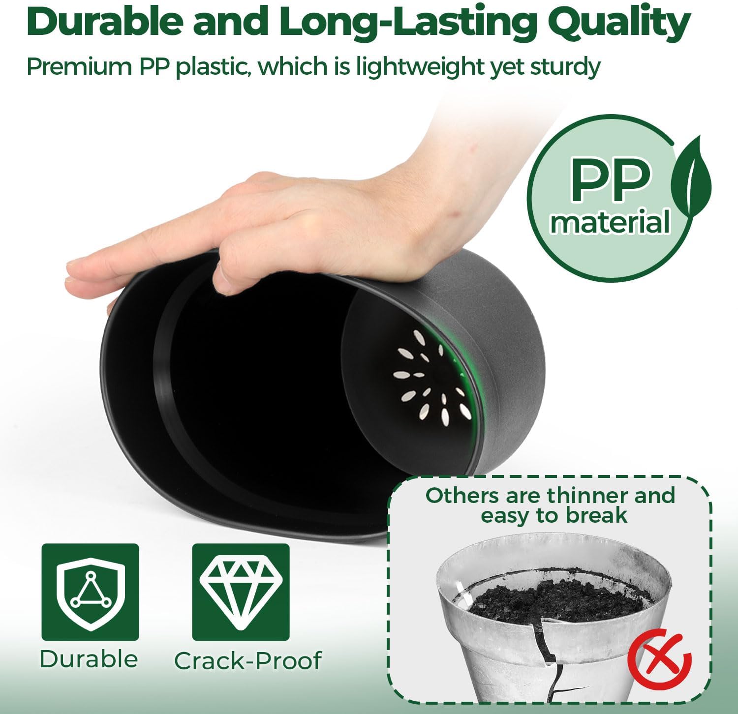 - 【Lightweight, Durable, and UV-Resistant】T4U plastic pots for plants are lightweight, durable, and UV-resistant, staying in great shape through sun, rain, or changing seasons—ideal for both indoor and outdoor spaces
