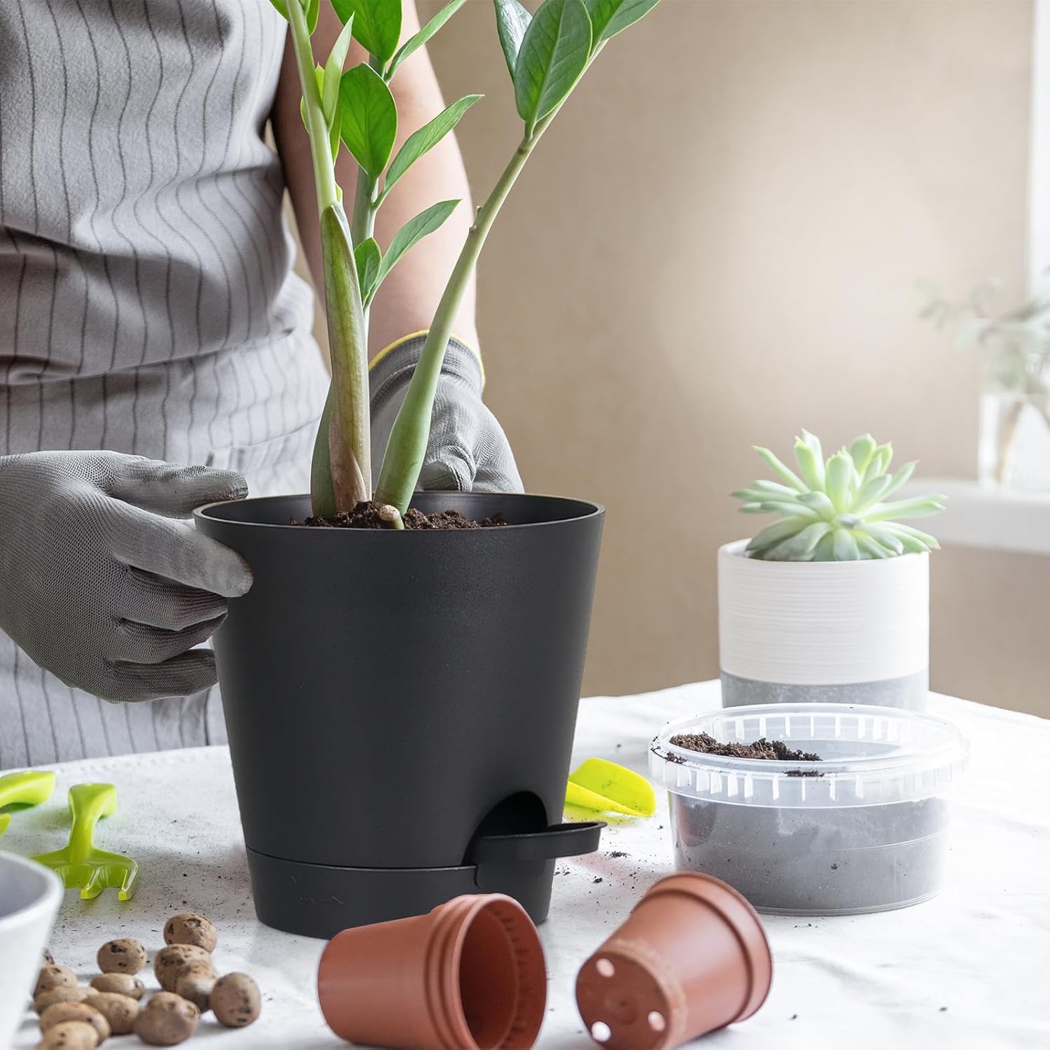 - Self-Watering Planters: Bottom tray collects excess water and allows bottom watering without drowning plants, while also providing a convenient way to monitor water levels.