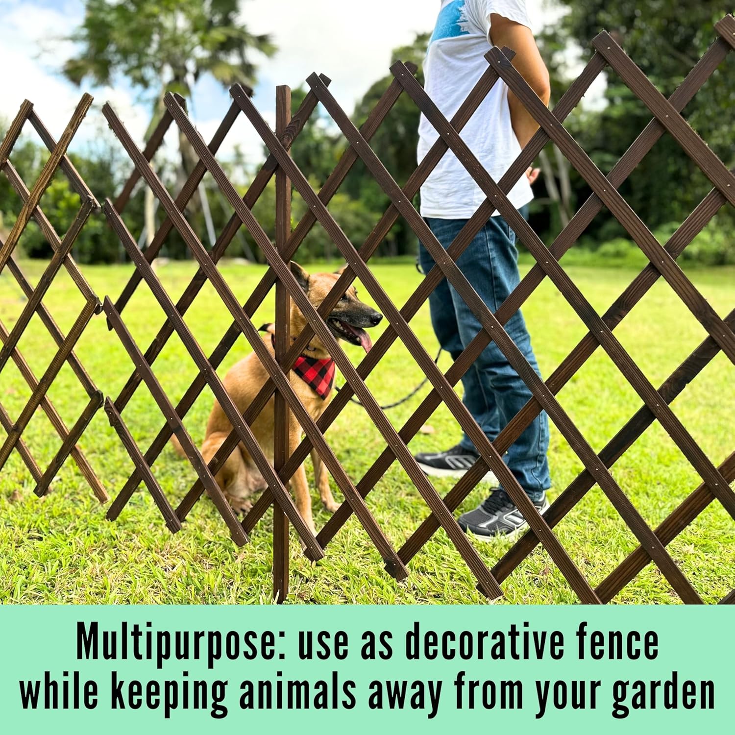 ShopLaLa Garden Fence (2 Pack, Total 12ft (L)) Wooden Lattice Panels for Outside Flower Edging Landscape Patio Outdoor Decor, Expandable Wood Plant Trellis Fences and Gates, Animal Barrier for Dogs