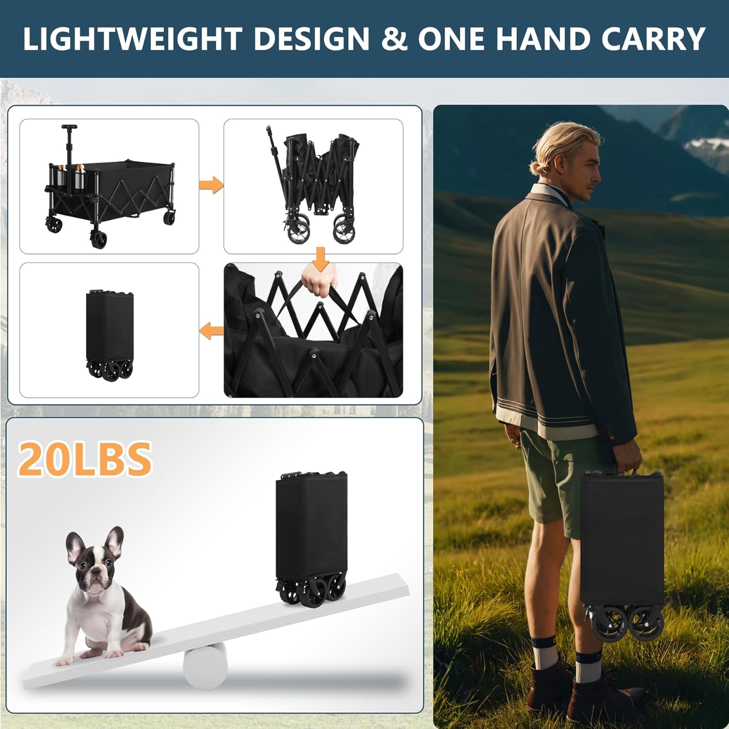 - Ultra-Compact and Portable Design - Favoyard weighing only 19 pounds, this wagon is designed for ultimate portability. It folds down to a remarkably compact size of 23" x 11.5" x 7", allowing it to fit snugly in the trunk of your car, a closet, or any small storage space. You can take it with you on all of your adventures, from shopping trips to outdoor excursions, without taking up much room.