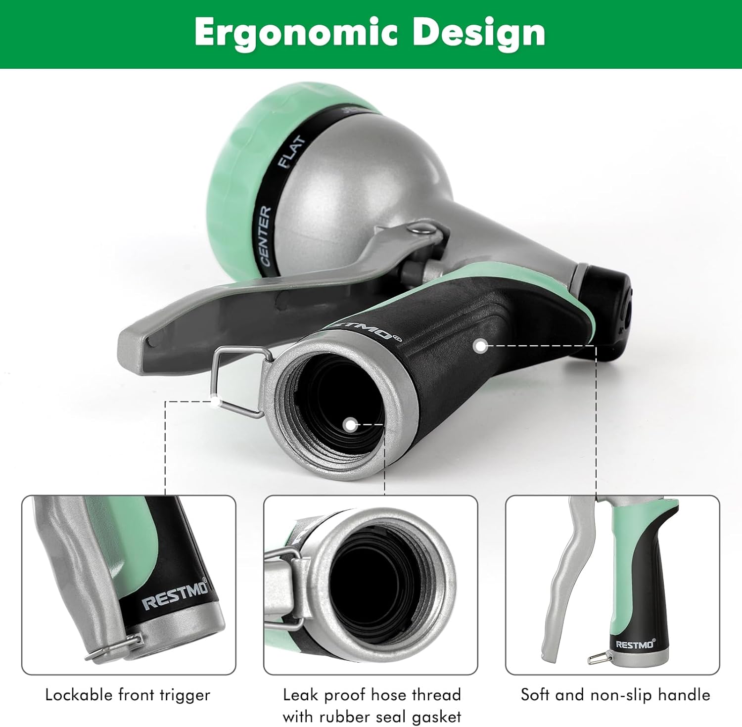 - ERGONOMIC DESIGN: Coated with the soft TPU and non-slip grip, this low-profile hose nozzle adds comfort and avoids hand fatigue. The pistol grip front trigger is easy to hold and can be locked anytime.