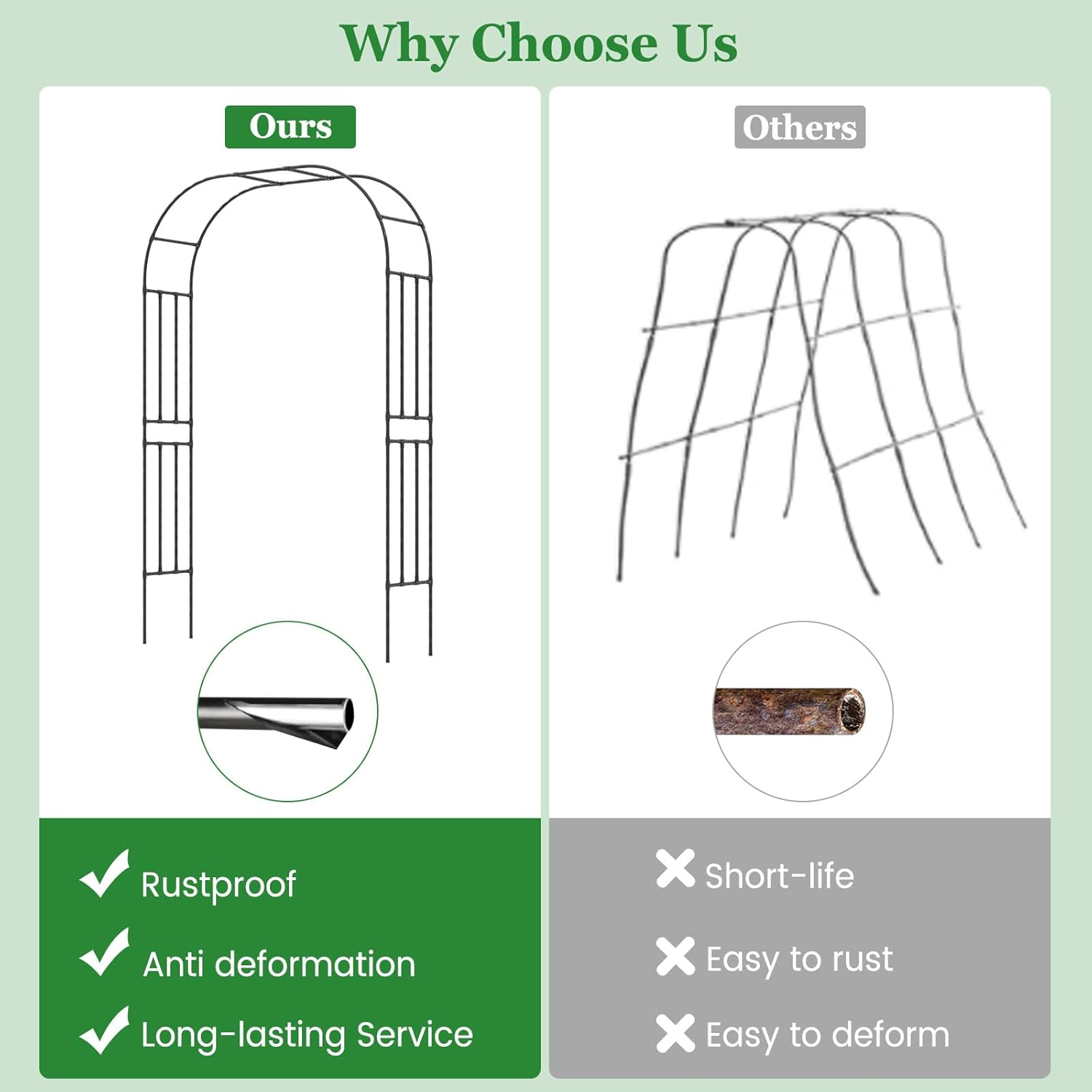 - Selected Metal Tubes: This garden pergola features premium metal tubes, which is high resistance to withstand the elements. The protective PE coating against corrosion, while preventing plants from being burned. Plus, the spiral rods within are designed for easy attachment of climbing plants.