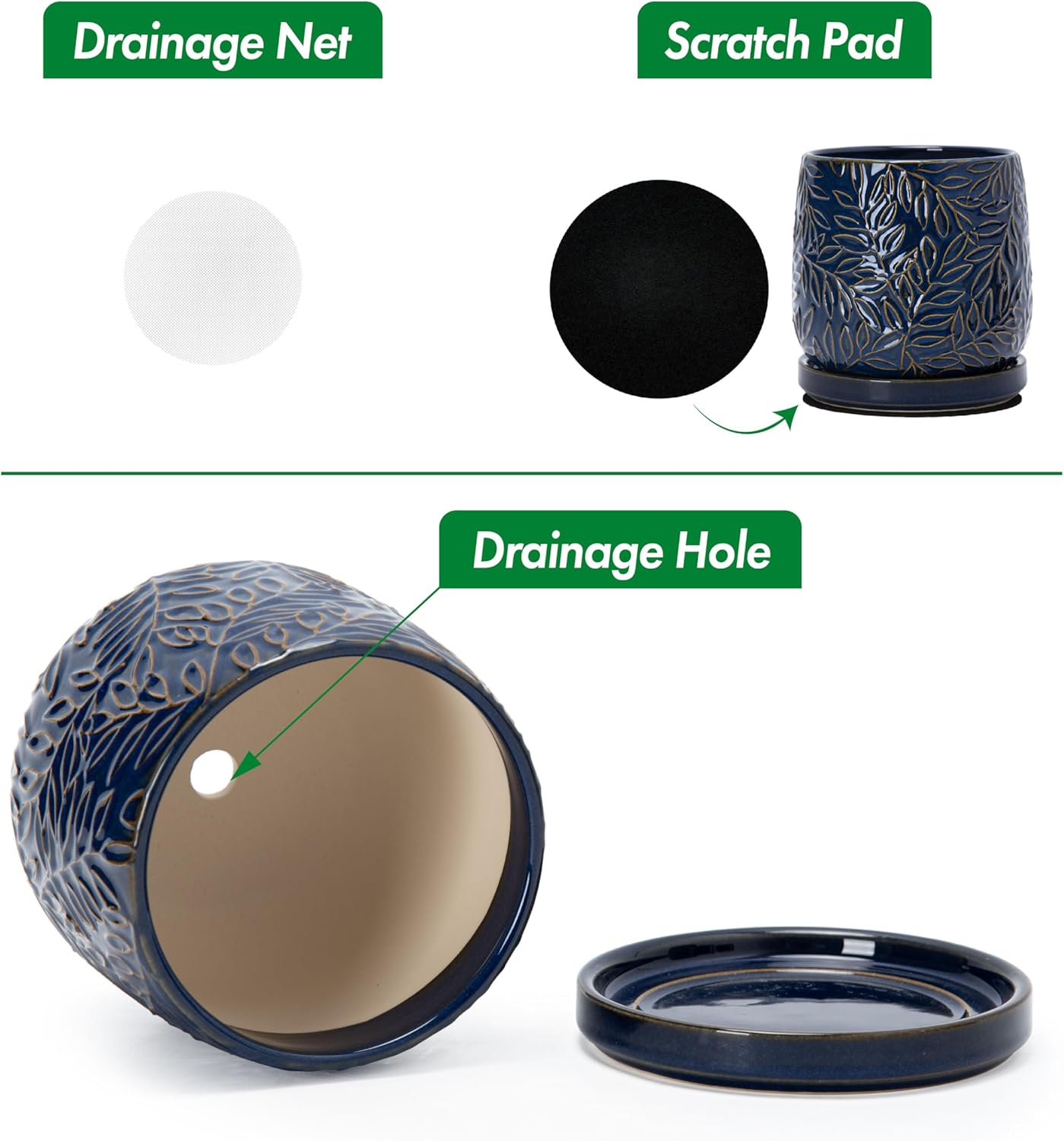 - Drainage Hole and Saucer: Each pot comes with pre-drilled drainage hole and matching ceramic tray to drain excess water.