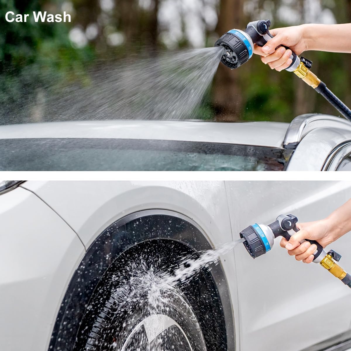 - 10 SPRAY PATTERNS: Rotate the sprayer head dial to select a water pattern you needed. Whether you need the high-pressure jet to clean your patio or the soft shower to water your garden, the 10 patterns have you covered. Perfect for Cleaning cars or hard surface, watering lawns & garden, and washing a dog.