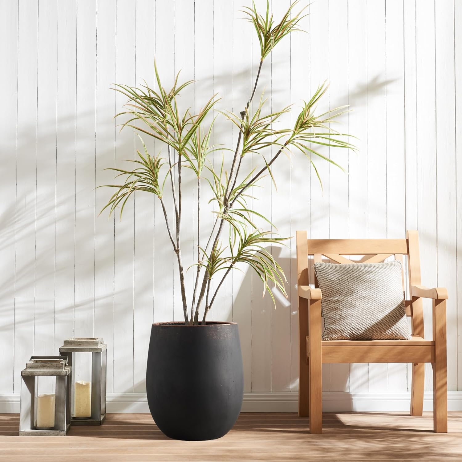 13.3" Dia x 15.3" H Concrete Planter, Outdoor Planter, Black with Gold Rim, Flower Pot with Drainage Hole and Silicone Plug, Plant Container for Garden, Patio, Home, Office, 1 Pack