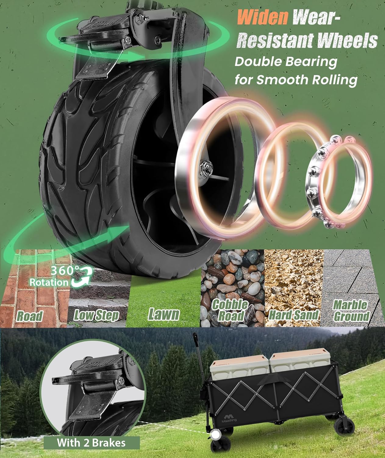- šš§š§šØšÆššš¢šÆš ššššš«š¢š§š ļ¼ šš«š šØš§šØš¦š¢š ššš§šš„š: Our foldable wagon with wheels feature an advanced stable steering structure that ensures smooth, straight-line movement, eliminating side-to-side sway and wheel collisions. The adjustable handle allows for 90° rotation, accommodating various heights. Its rebound mechanism keeps the handle upright, ready for use without the need to bend over