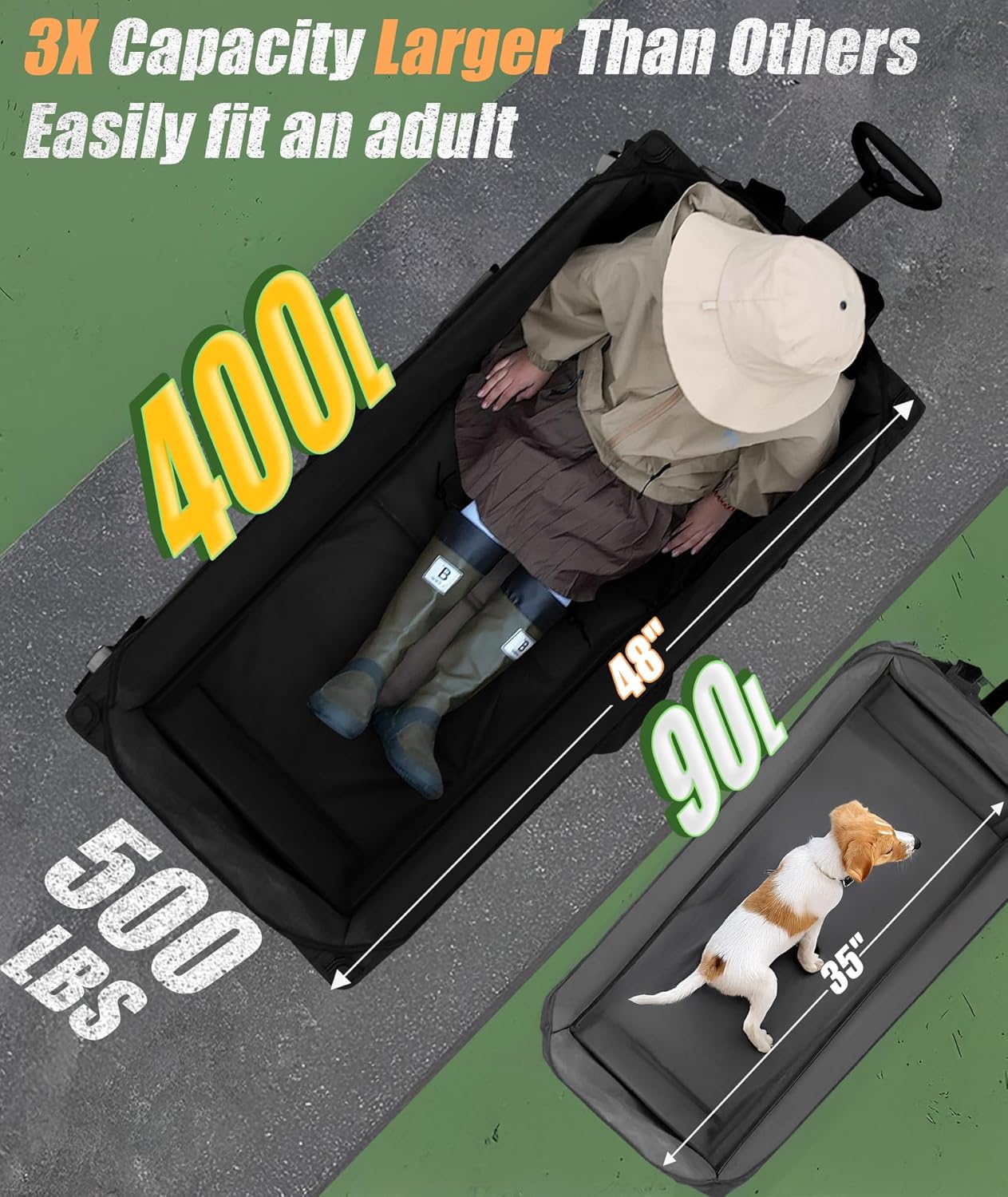 48āL Foldable Wagons Carts Extended, Collapsible Folding Wagon 500lbs Heavy Duty, 320L Large Beach Wagon, Utility Wagon with All Terrain Big Wheels for Sports, Camping, Grocery, Garden, Black