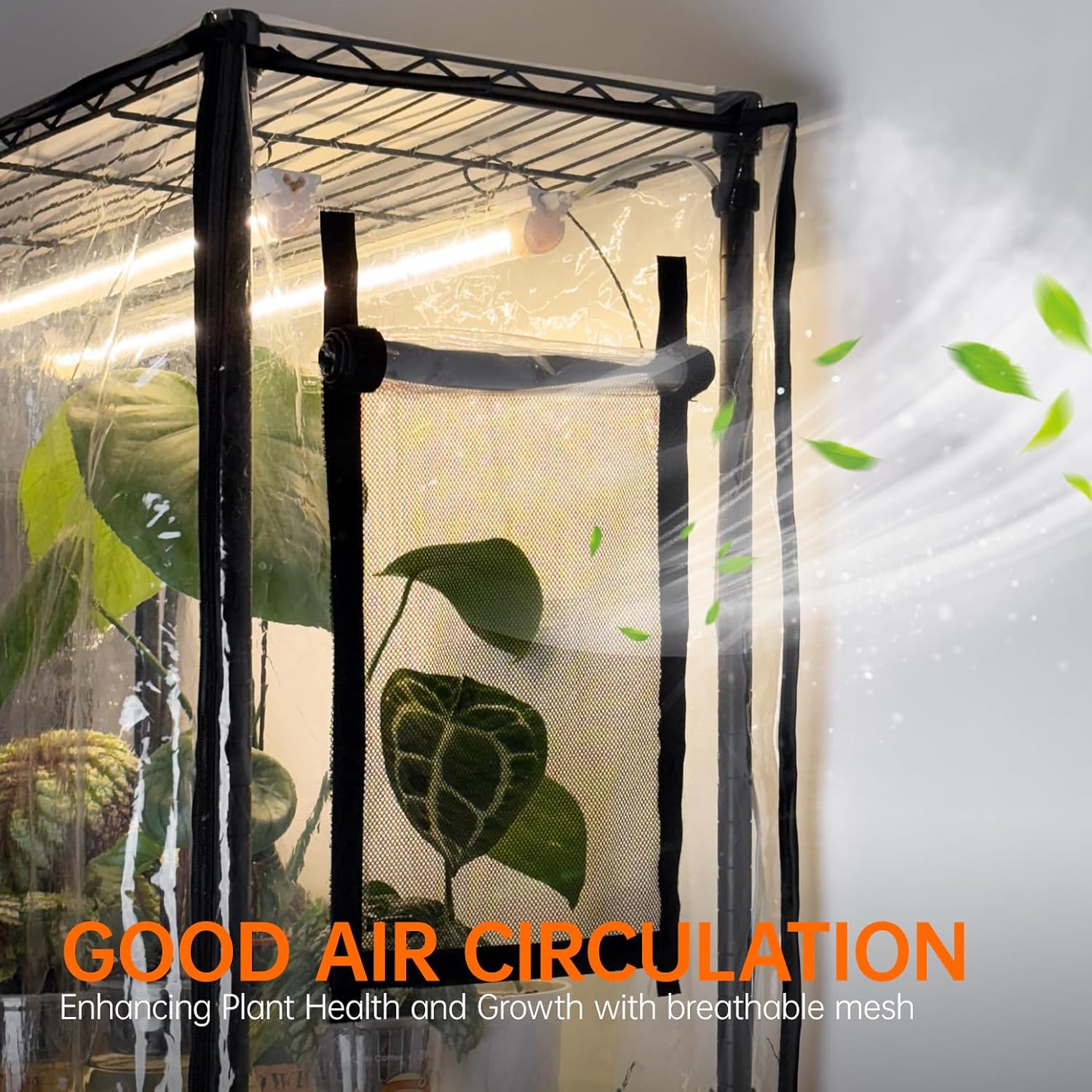 - EVA Greenhouse Cover with Roll-Up Zipper Door and Side Windows - The 7.87 mil thick greenhouse cover is sturdy, with double the thickness to ensure that the greenhouse maintains the temperature and humidity needed for plant growth. Its high light transmittance allows for easy monitoring of plant growth from outside. The roll-up zipper door provides convenient access for watering and fertilizing, and the four side windows promote optimal ventilation