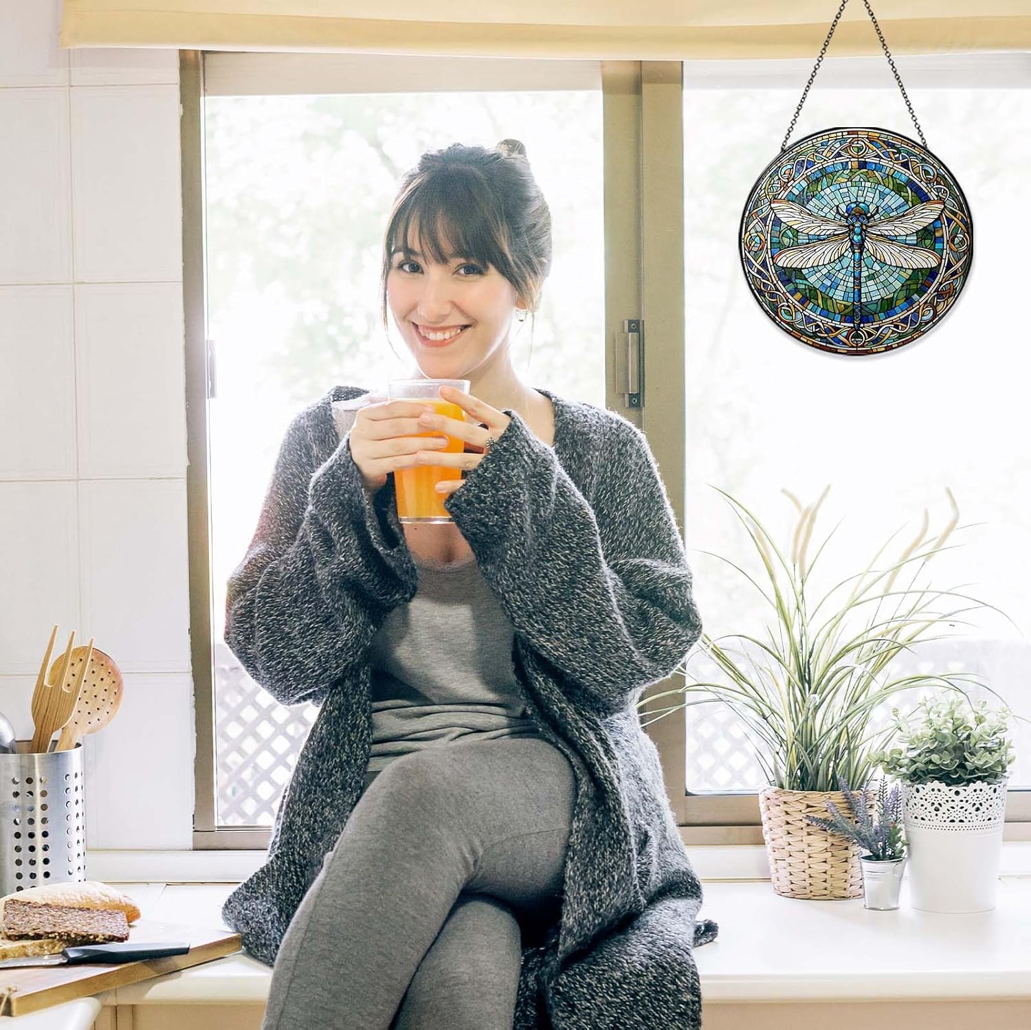 Dragonfly Stained Glass Window Hanging Sun Catcher Dragonfly Gifts for Women Wall Decor Handmade Sun Catcher Decoration for Garden Home Housewarming Gifts
