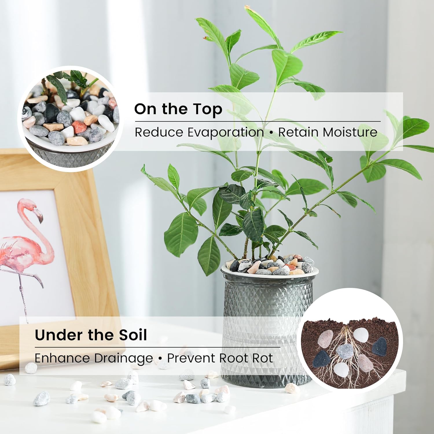 - [ Smart Moisture Control Technology ] Surface application reduces watering frequency through evaporation barrier. When mixed into soil, increases drainage efficiency to prevent root rot in moisture-sensitive plants like succulents and cacti.