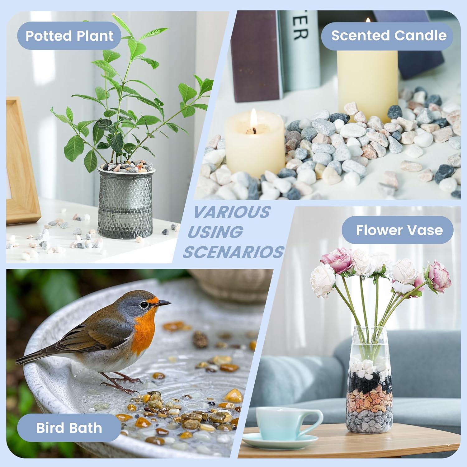 - [ Multiple Decorative & Functional Uses ] Transform indoor/outdoor spaces: Use as vase filler, fairy garden decor, Zen meditation trays, walkway borders, or aquarium substrate. NOTE: Rinse 2-3 times with water before use to remove natural mineral dust.