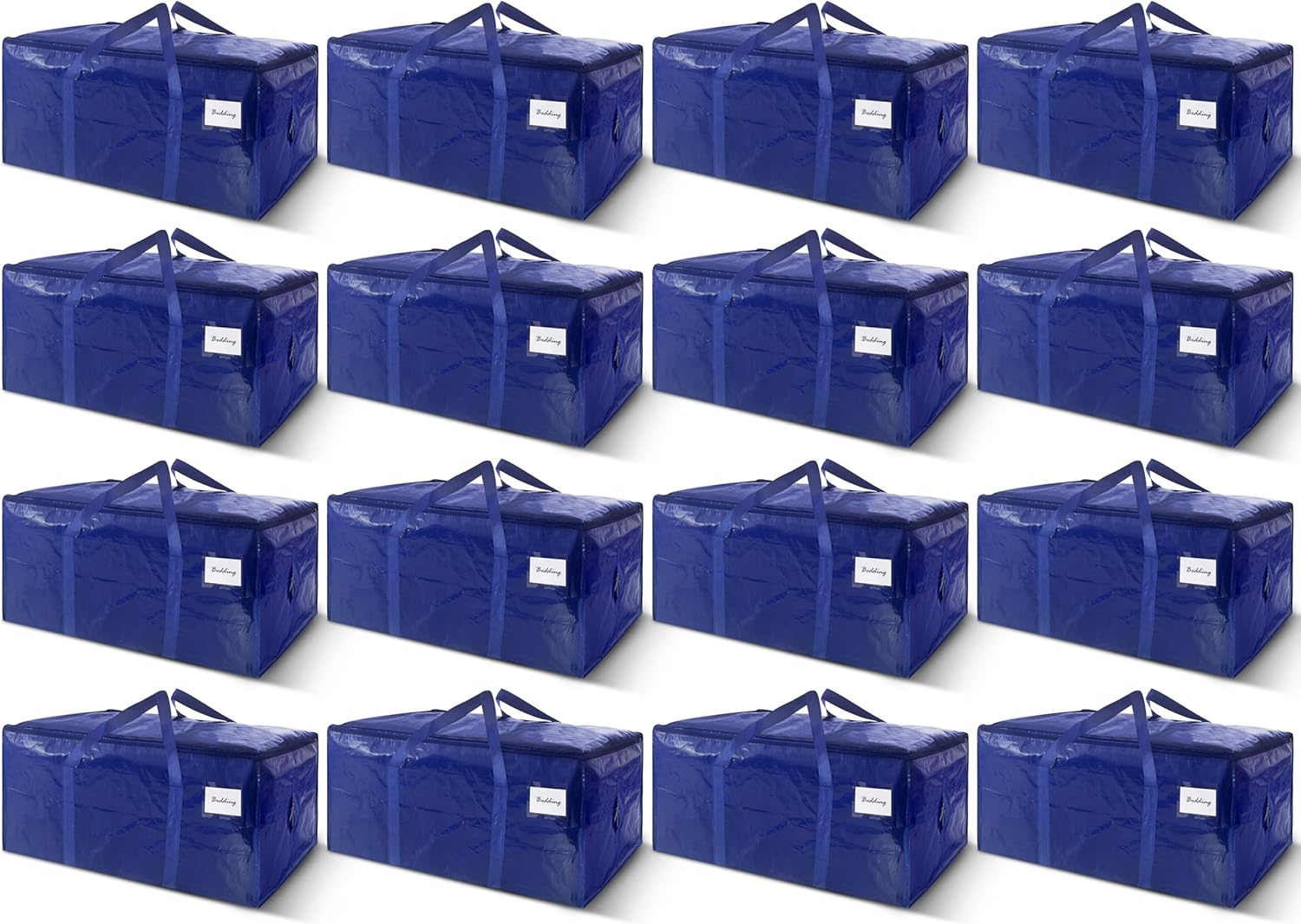 16 Pack Extra Heavy Duty Large Moving Bags with Strong Zipper & Carrying Handles, Sturdy Clothes Storage Bag Totes Bins, Packing Bags Moving Boxes College Moving Supplies, Dark Blue - 24 gal