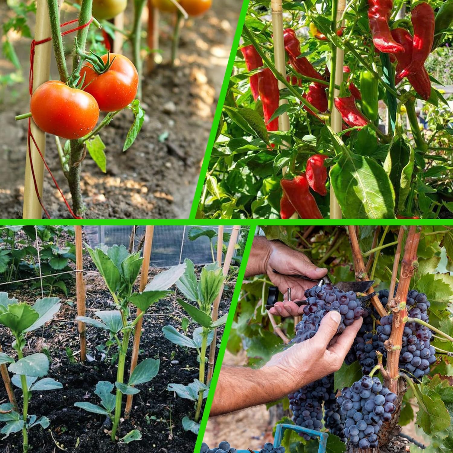 - Multipurpose Use: Bamboo plant stakes are great support for seedling, vegetables and flowers, and can be used for seeding support, tomatoes, beans, eggplants, jasmines, orchids, cucumbers, peppers, flowers, potted plants, etc