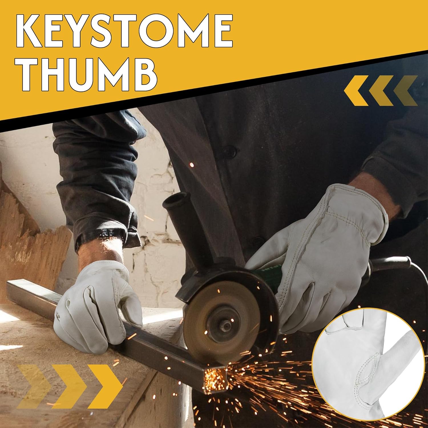 - Enhanced Grip & Durability: These leather work gloves designed with a reinforced patch at the key points for extra durability and grip. Whether you’re handling tools, materials, or working in tough conditions, the additional reinforcement helps you maintain a firm, reliable grip while ensuring long-lasting wear