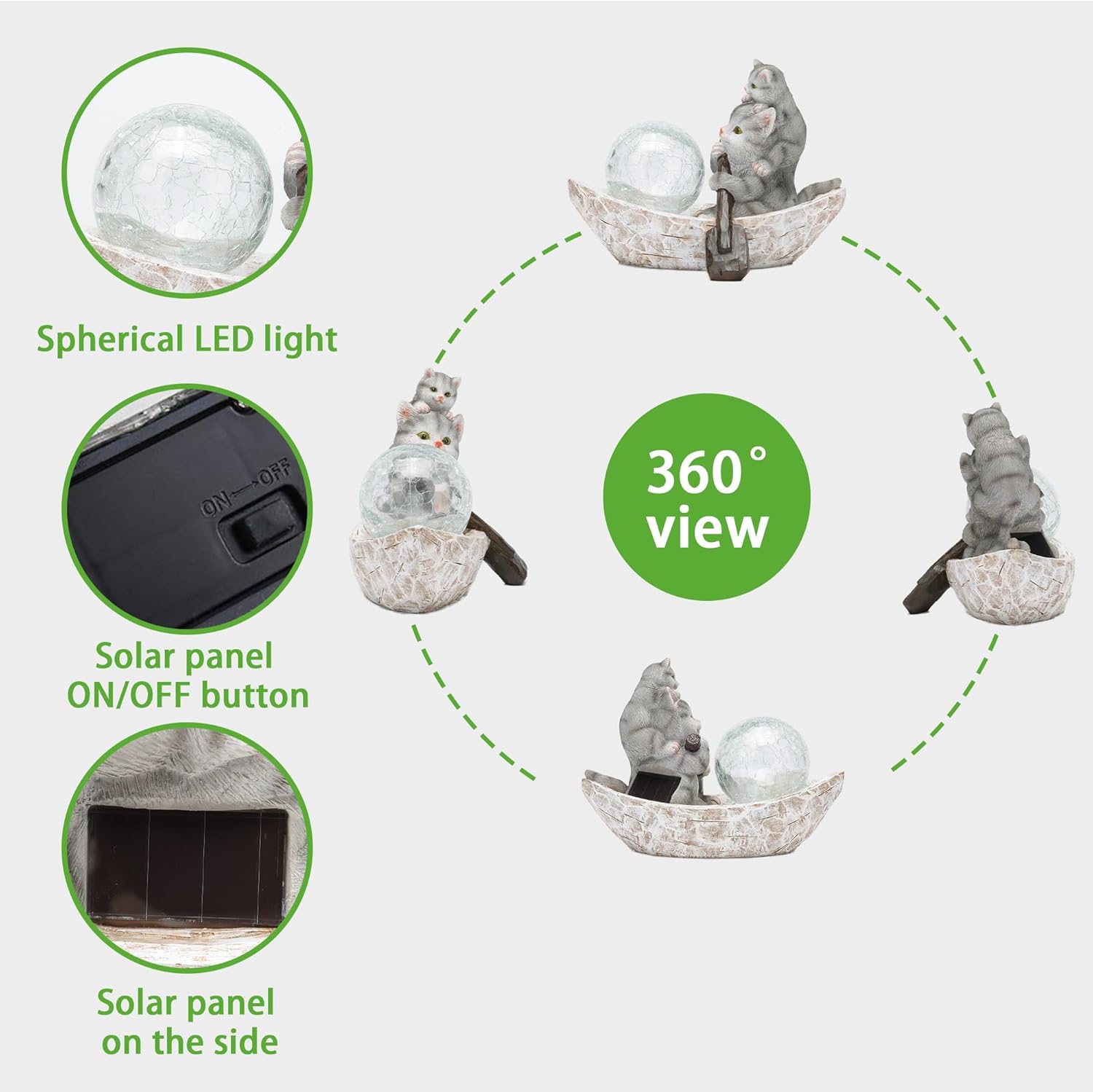 - 【Cute Outdoor Garden Decorations】This solar Cat garden decor is made of high quality resin.It looks dorable at day and the solar LED lights will Illuminate your front yard,lawn,patio,balcony or garden at night.