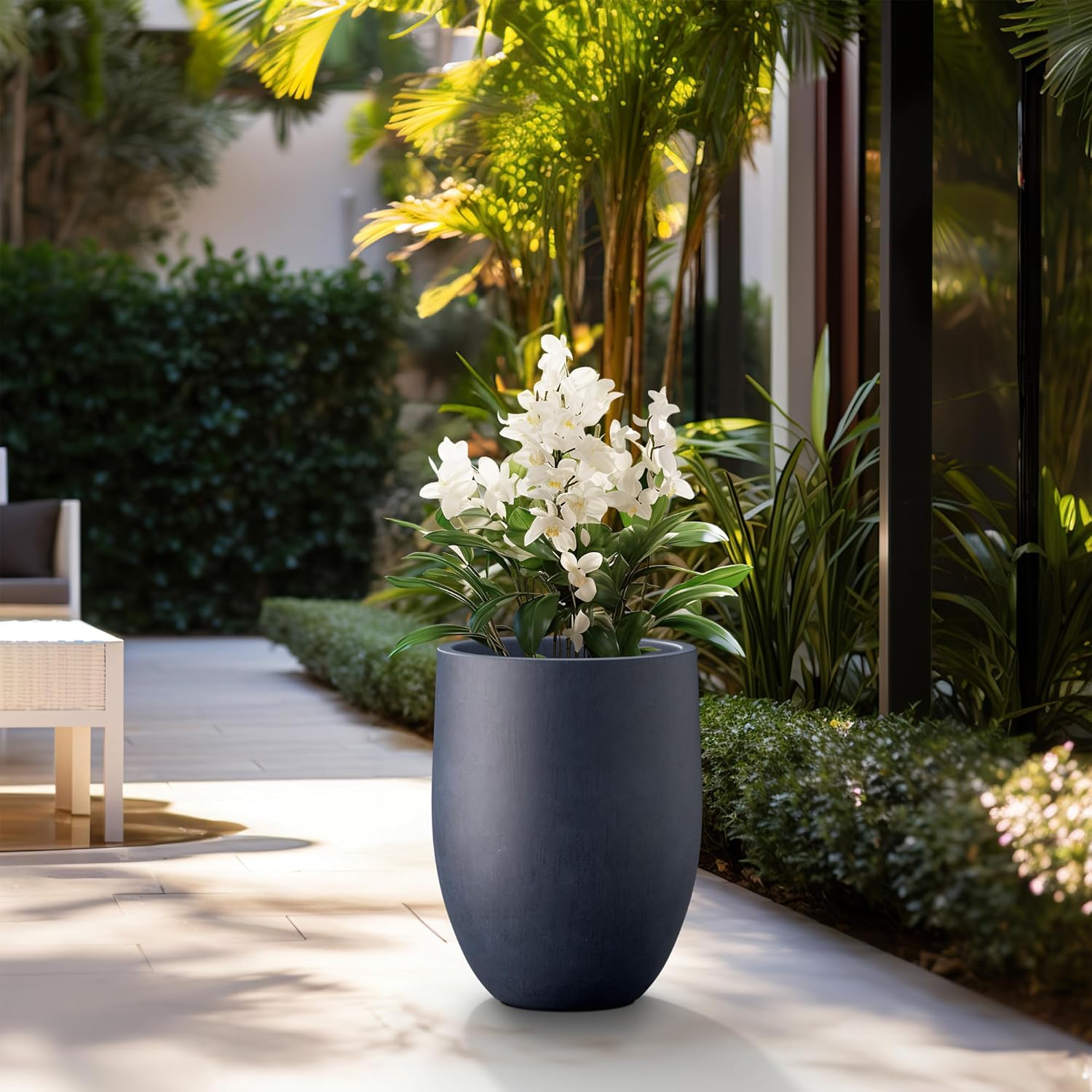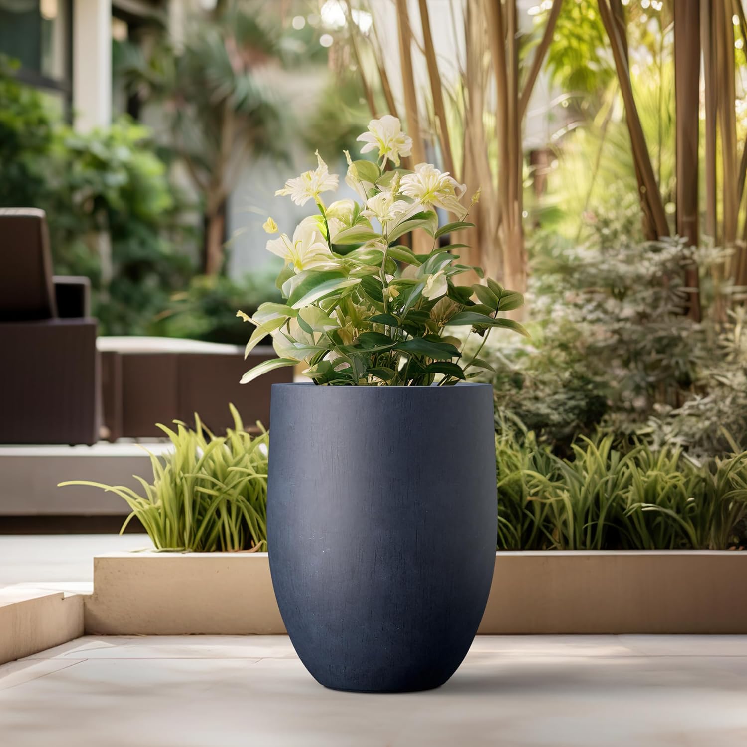 Kante Tall Concrete Planter, 21.7-Inch Height Antique Blue Large Indoor Outdoor Plant Pot with Drainage Hole for Patio Garden Home, Modern Decor for Flowers and Tree