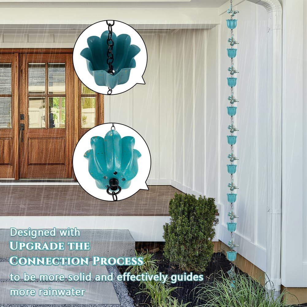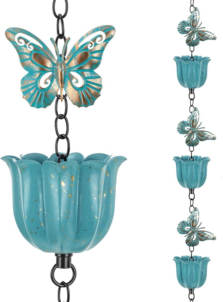 - Adjustable Rain Chain: The lotus rain chain is 8.2 inches long. The chain can be disassembled to shorten the length or assemble two rain chains to increase the length, which can be adjusted according to the height of your own house. After receiving the goods, you can hang the butterfly on the rain chain on the chain as needed