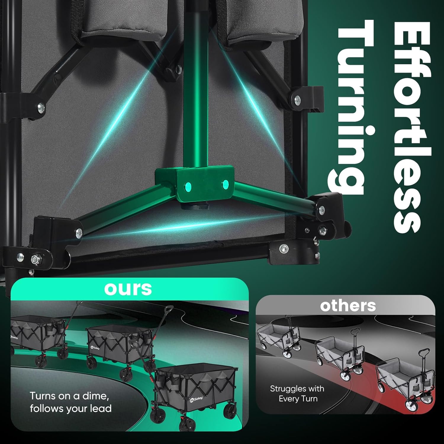 Collapsible Wagon Cart with Big All-Terrain Beach Wheels, Foldable Heavy Duty Wagons with Cup Holders, Utility Carts for Camping, Garden, Outdoor, Grocery, Sports. Grey