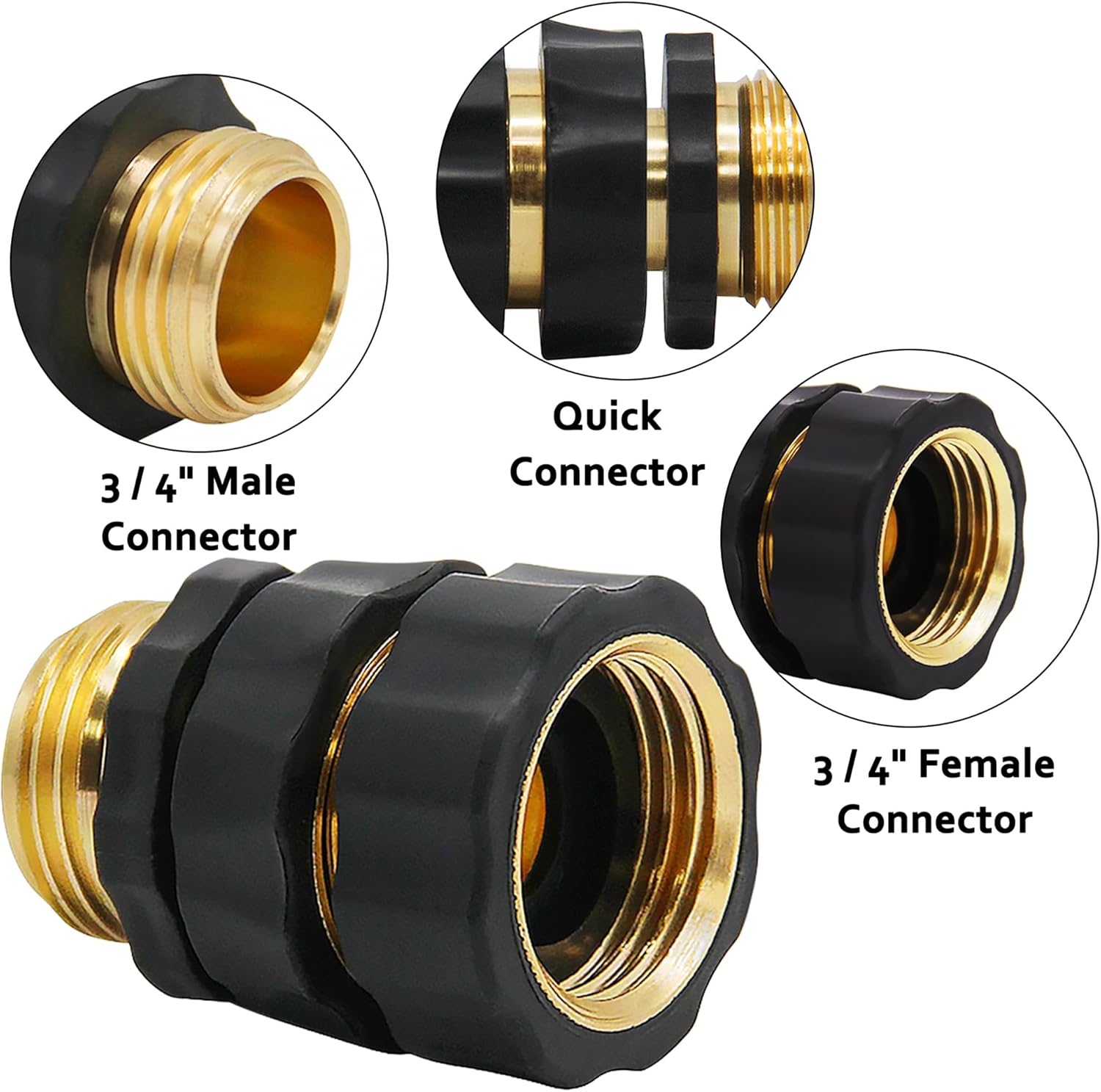 3/4 Inch Garden Hose Quick Connector Fittings, Easy Connector Fitting, Male and Female Set, 3 Pack