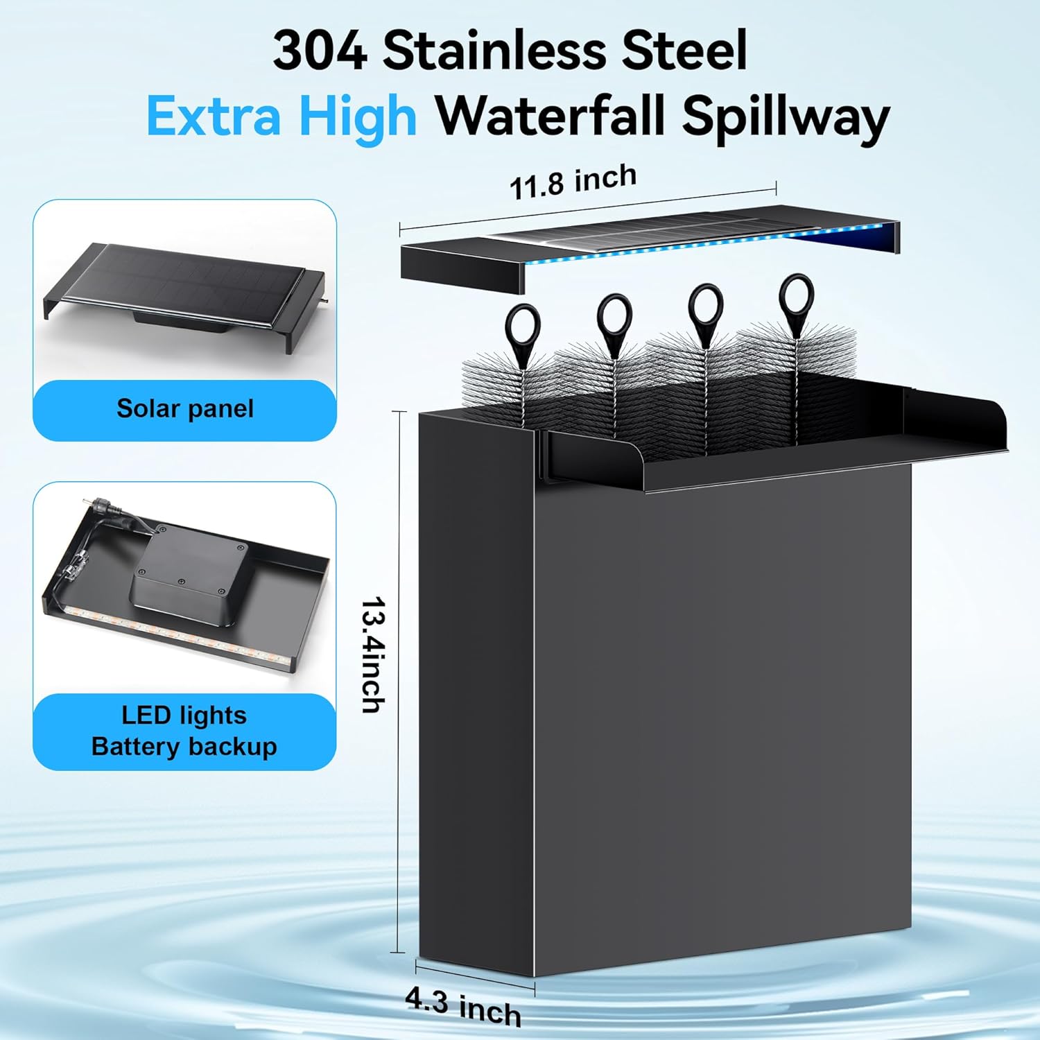 - 【High-quality 304 Stainless Steel】Pond Waterfall box Adopts 304 stainless steel is carefully crafted to be corrosion-resistant and oxidation-resistant to ensure that it doesn't rust or deform in long-term use, and it is fearless of erosion by wind and rain and lasts for a long time. Its strong and durable characteristics, so that the waterfall bucket can work in the outdoor in a durable and stable, enhance the overall decorative effect.