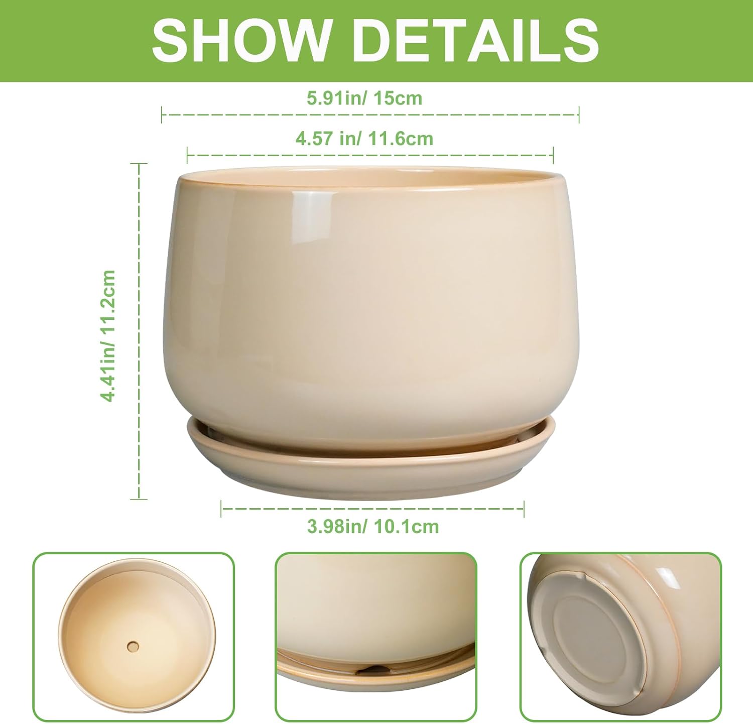 - Plant Pot with Drainage: The ceramic planter has a drainage hole at the bottom and a matching plant tray, which can collect excess water drainage and soil spillage, keep plant roots healthy. The planter includes a drainage mesh for better reduced soil loss