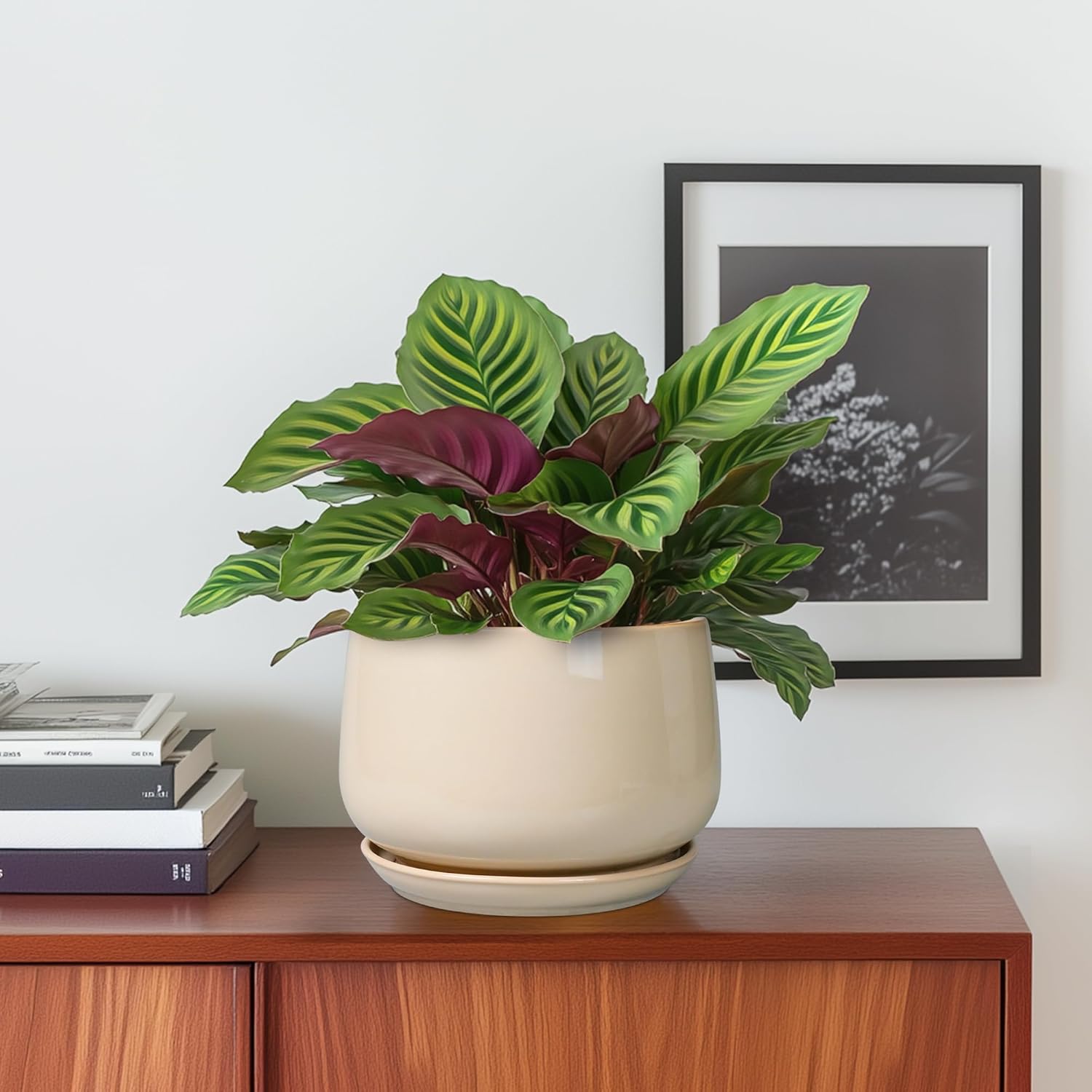 - Modern Planter: Adopting elegant modern design, classic ceramic indoor plant pots with curved contours, Beige planter add highlights to your indoor or outdoor space decoration, suitable for various styles of home decor, room decor, bathroom decor, living room decor, office decor, garden deocr