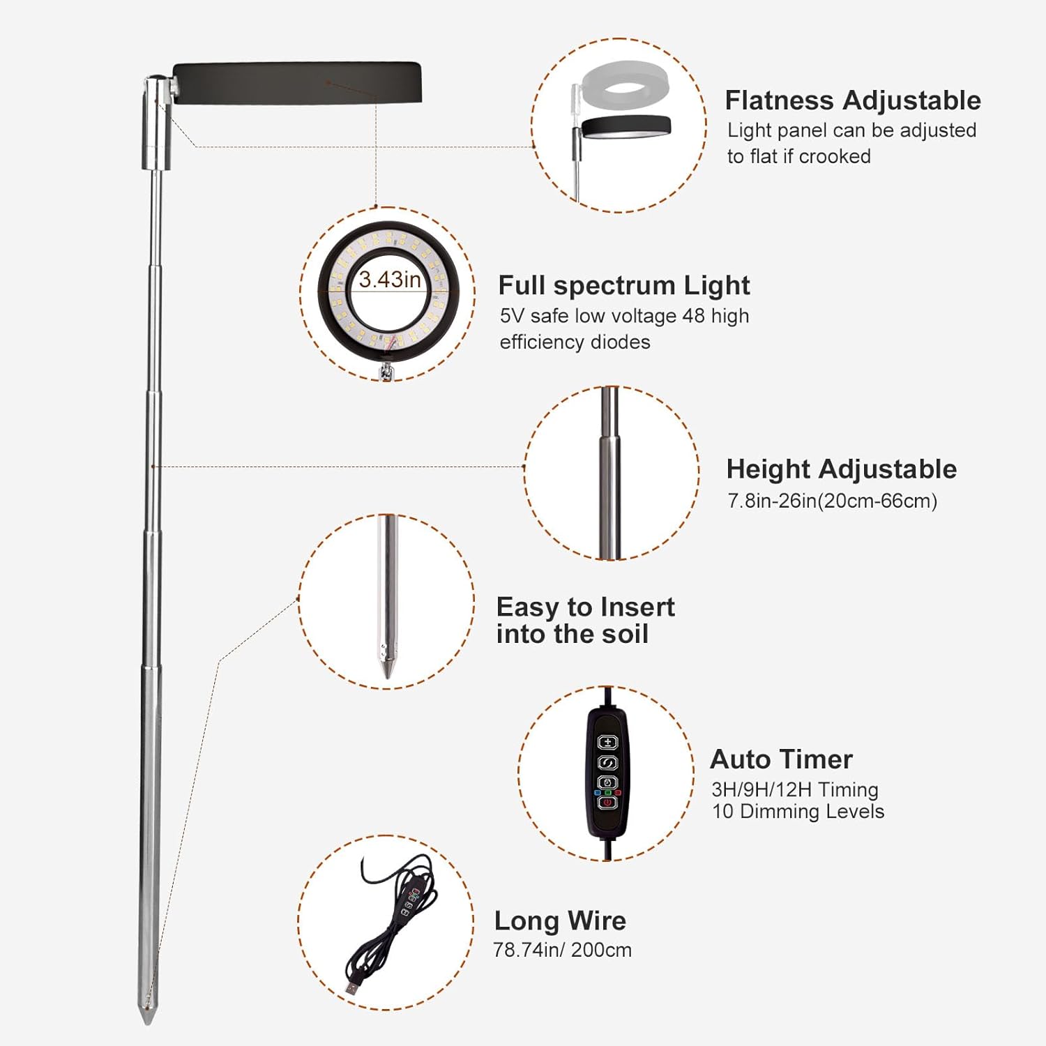 Grow Lights for Indoor Plants Small Potted - Full Spectrum, Auto 3/9/12H Timer, 10-Level Dimming & Adjustable Height - Compact Grow Light for Succulents, Herbs, Foliage in Home/Office (Black,1PACK)