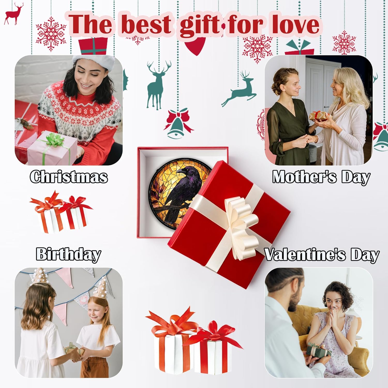 Stained Glass Window Hanging - Crow on a Branch Suncatcher Ready to Hang Window Doors Home Decoration and Christmas, Mother's Day Birthday Gifts for Women, Men, and Mom 9.8x9.8 in