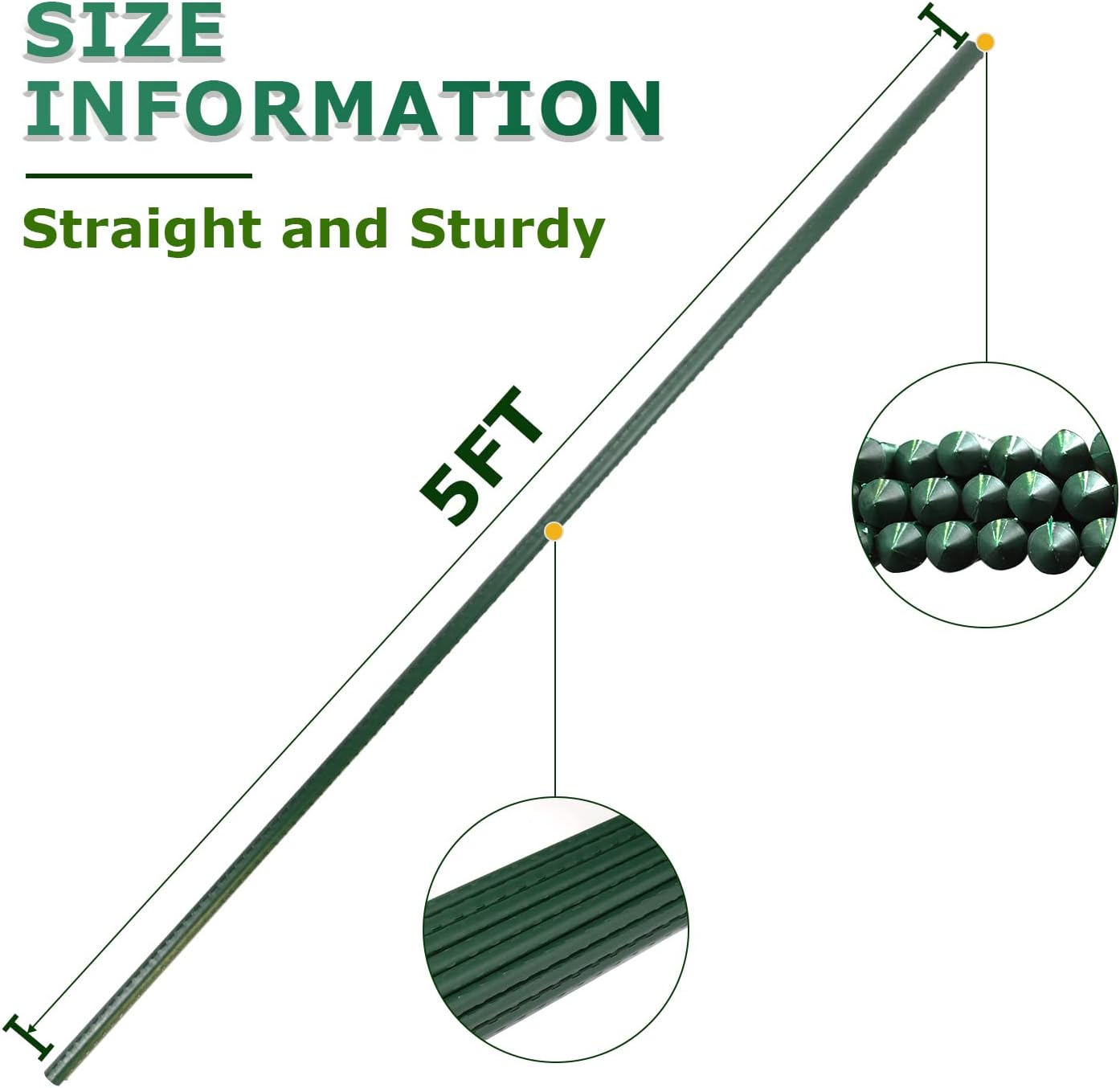 - WHAT'S INCLUDED : 5 Feet Height, 2/5 inch diameter. Each package contains 25 sturdy steel plant stakes.