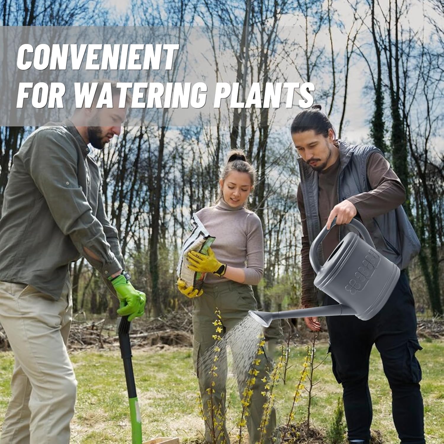 - Choose Freely, Switch Freely: Outdoor watering can with removable stainless steel shower head, can freely switch different watering modes, the shower head can evenly sprinkle water to protect delicate plants, and take off the shower head can be switched to the water column mode to water more water consumption of plants, which can meet the needs of different plants