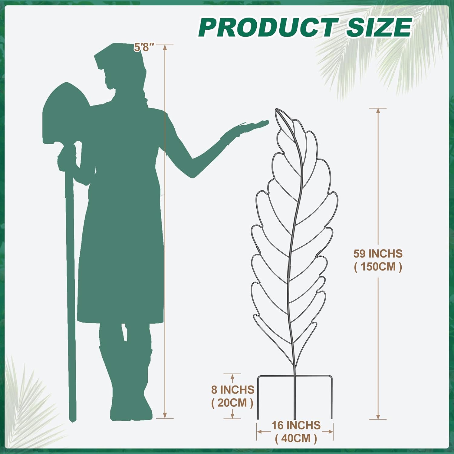- Optimal Size for Various Spaces: Measuring 59"H x 16"W, our leaf-shaped plant trellis is the perfect size for both indoor and outdoor placement. Its design ensures that your climbing plants receive the support they need to grow healthily and beautifully
