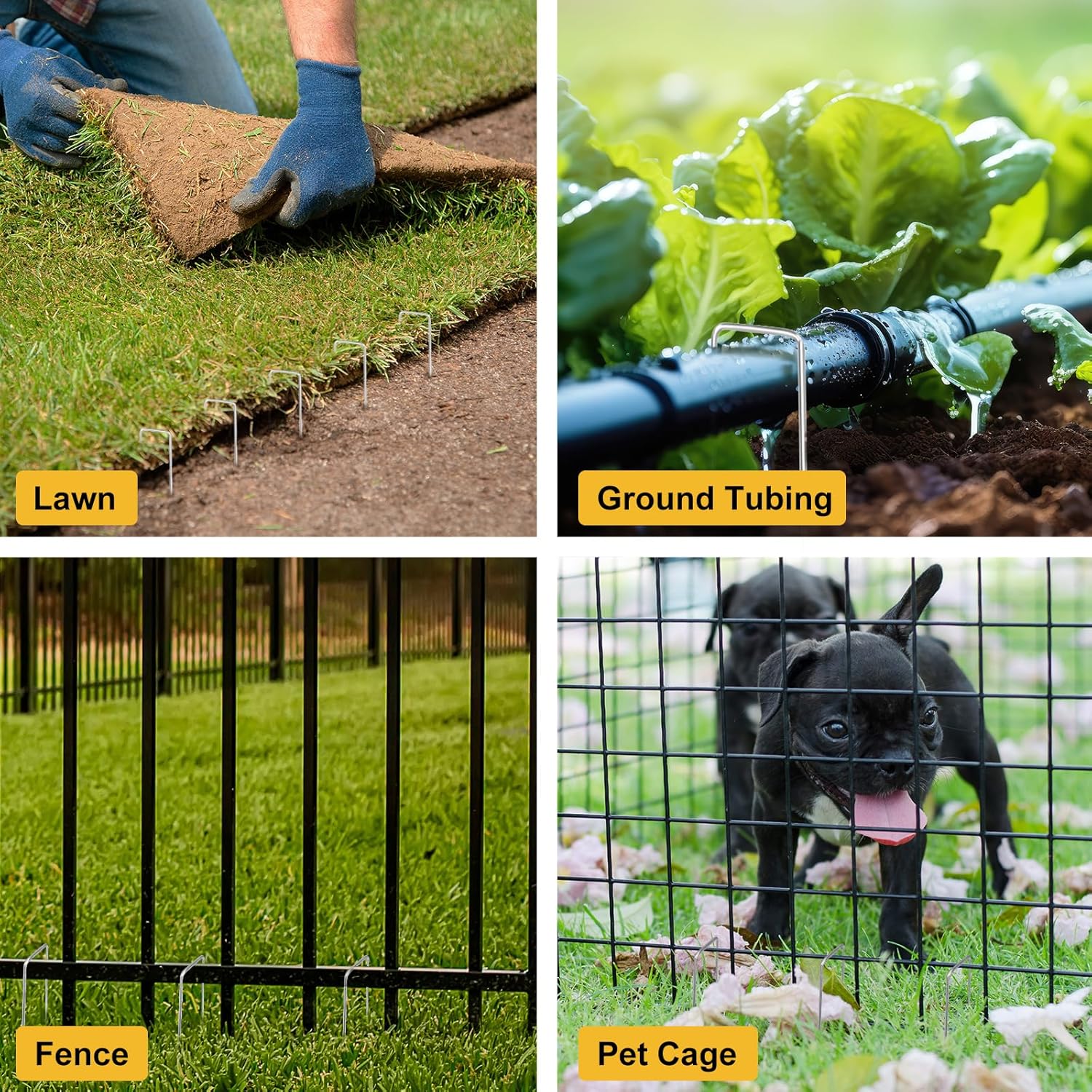 - Quality Product: These heavy duty landscape stakes are made of hard, firm, anti-rust galvanized steel, can be reused for many times and make these yard staples not easy to bend when driven into the ground or the lawn.
