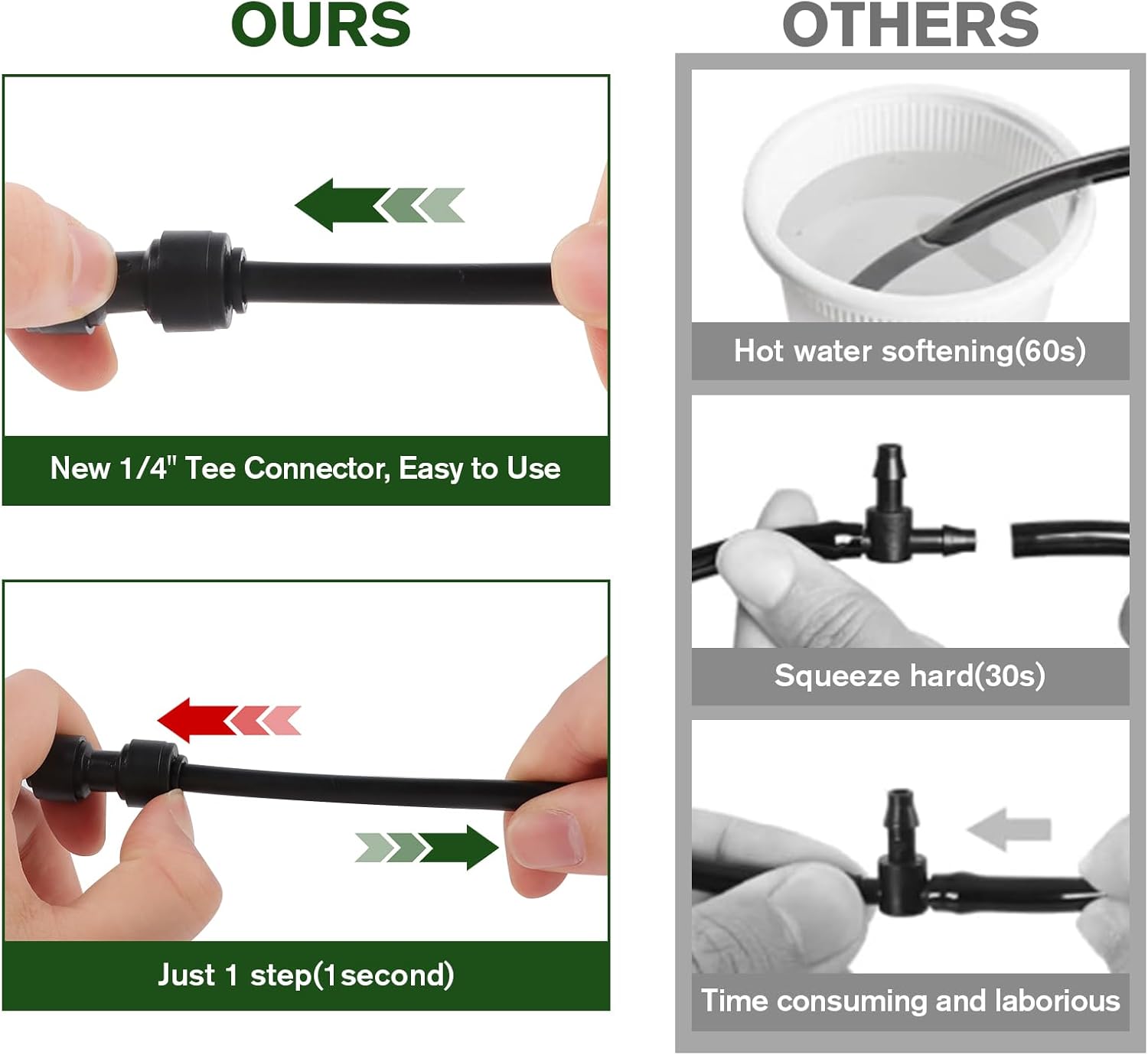 - Built to Last: Our 1/4" quick drip irrigation fittings are made of premium quality plastic with high-strength leak-proof seals to ensure a tight fit with the push-on connection, which can withstand harsh outdoor conditions and is resistant to deformation, cracking and abrasion.