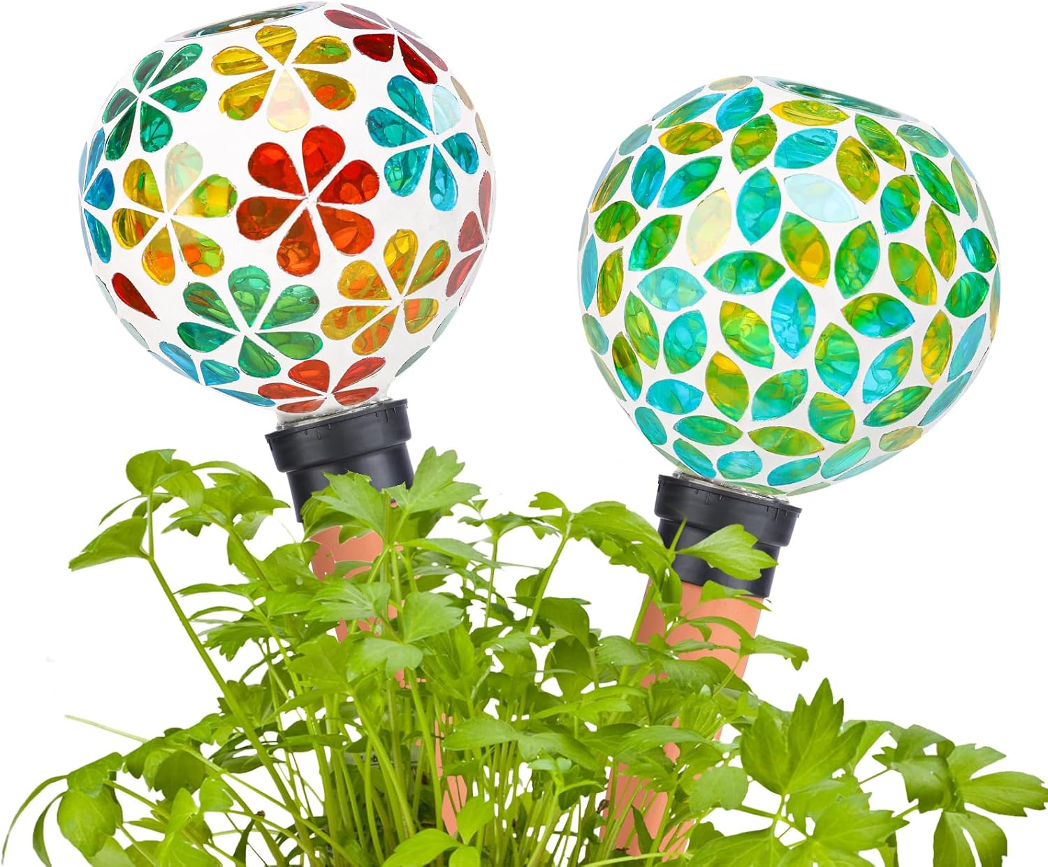 Plant Watering Globes Mosaic Self Watering Stakes 2 Pack Large Self Watering Planter Insert Automatic Watering Device Outdoor Indoor Decoration