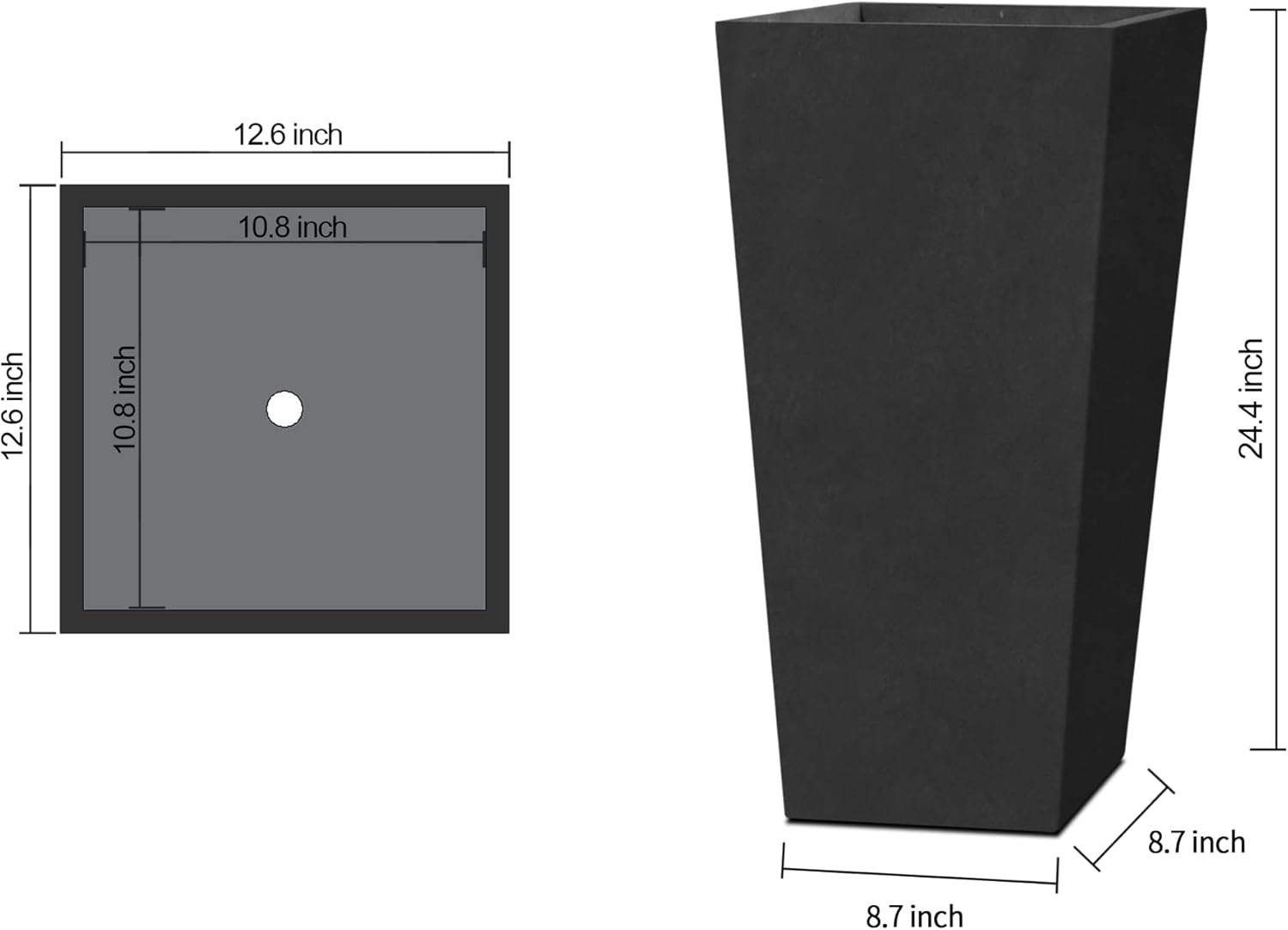 - Generous Growing Space β Thoughtfully crafted to offer plenty of room for healthy and vibrant plant growth, this planter is well-suited for a wide range of plants, from tall trees to resilient succulents and colorful flowers. Its spacious design promotes healthy root development, enhancing the overall growth potential of your plants. The robust construction ensures durability and reliability, making it a source of lasting, stable support for your gardening endeavors.