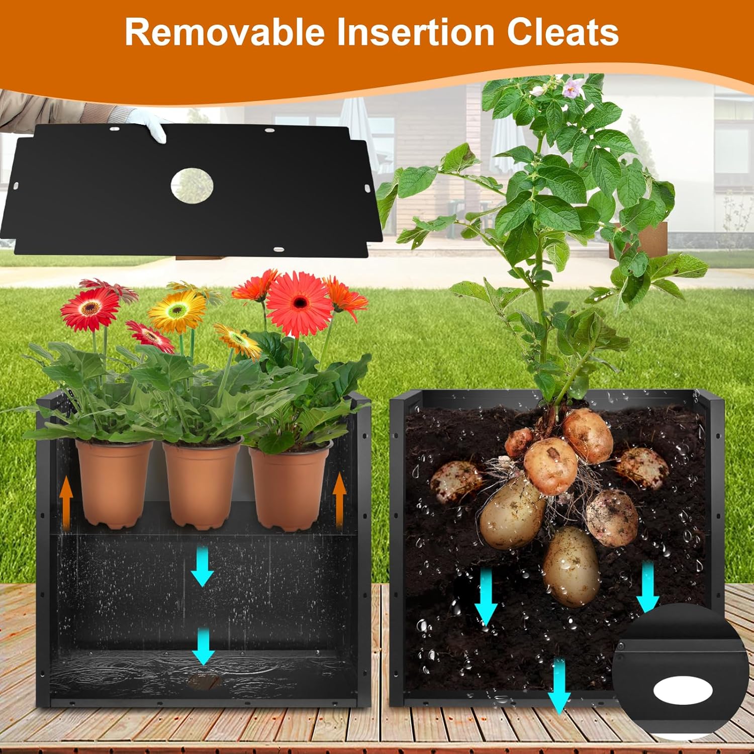 - 【Removable Insertion Cleats】:Our planters are equipped with removable insertion cleats, which can either be used to place a variety of pots on the upper level or filled with soil to grow plants, or you can remove the cleats and place some large plants for different heights, in addition, there is also a round drainage hole at the bottom of the planter box, which will allow your plants to grow healthily