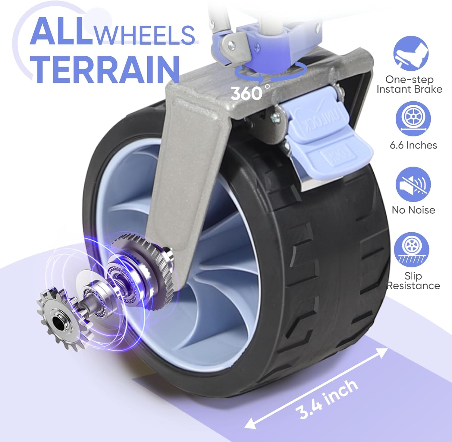 - ๐๐น๐น-๐ง๐ฒ๐ฟ๐ฟ๐ฎ๐ถ๐ป ๐๐ถ๐ด ๐ช๐ต๐ฒ๐ฒ๐น๐: ๐ฒ.๐ฒ" heavy-duty wheels tackle any terrainโideal for sand, rocks, grass, and mud! Built-in bearings ensure a ๐พ๐๐ถ๐ฒ๐ ๐ฟ๐ถ๐ฑ๐ฒ, and the ๐๐๐ฒ๐ฝ-๐ฏ๐ฟ๐ฎ๐ธ๐ฒ system gives you instant stopping power.