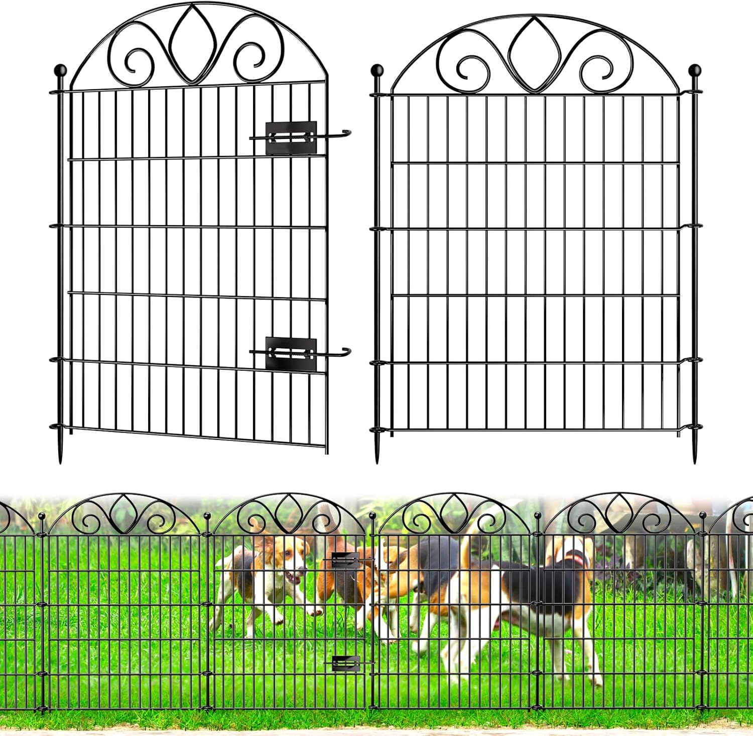 10 Panels No Dig Tall Garden Fence with Gate – 34" H X 22' L Rustproof Metal Dog Fences Outdoor for Yard, Decorative Animal Barrier Fence for Pet, Garden Border, Patio, Flower | Temporary Fencing