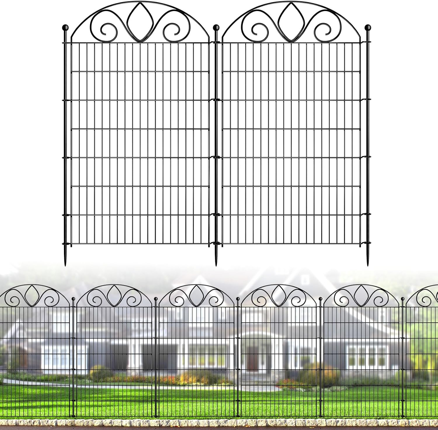 4 Panels No Dig Tall Garden Fence Panel – 48" H X 10.5' L Rustproof Metal Dog Fence Outdoor for Yard, Decorative Animal Barrier Fence for Pet, Garden Border, Patio, Flower Beds| Temporary Fencing