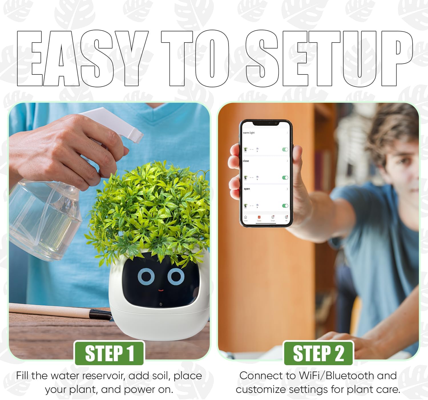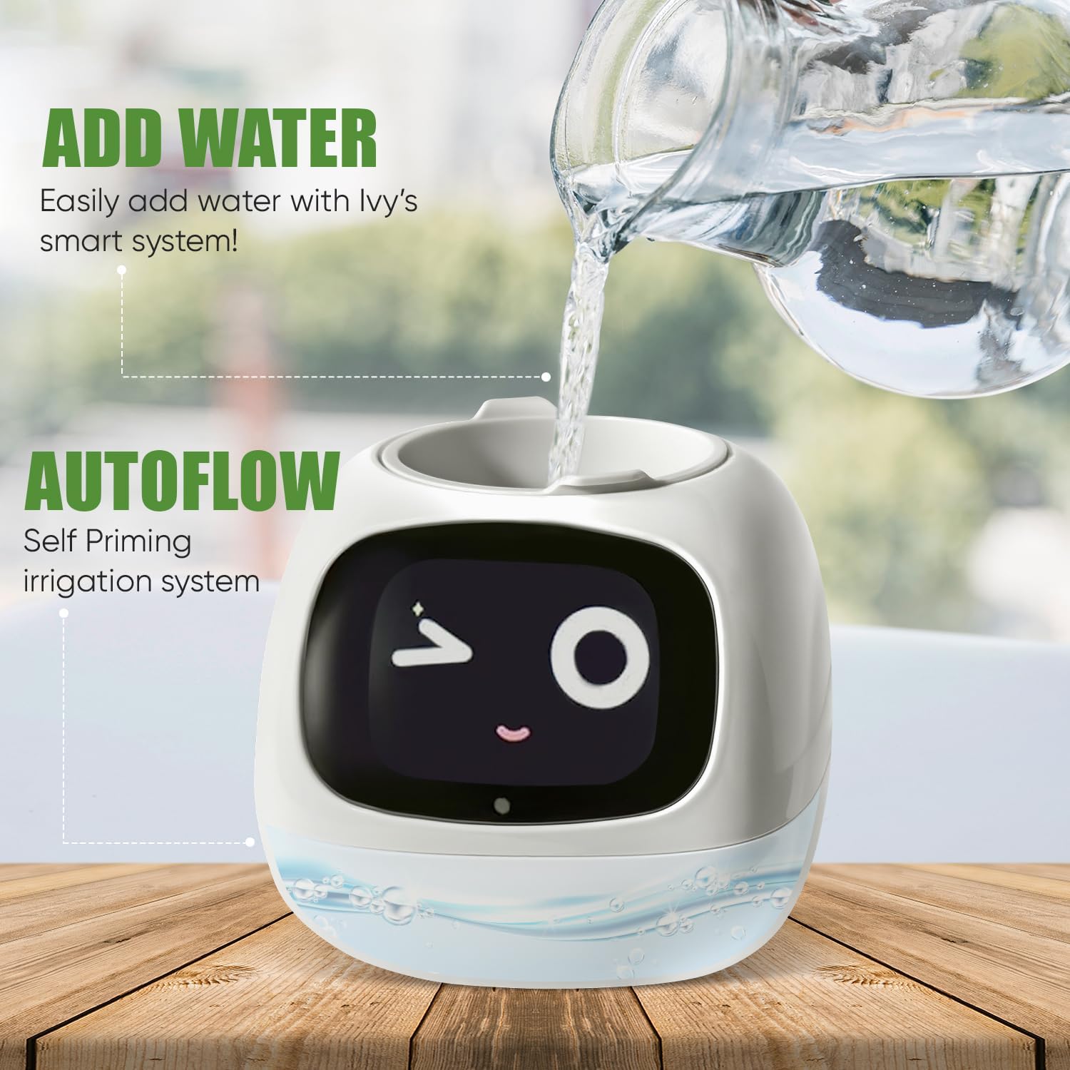 - AI- EASY PLANT CARE – Imagine your plants thriving with minimal effort. The Ivy Smart Planter features AI-powered Plantagotchi technology that interacts with your plants, reminding you when it’s time to water and giving your plants a personality with its robotic flower with feelings.