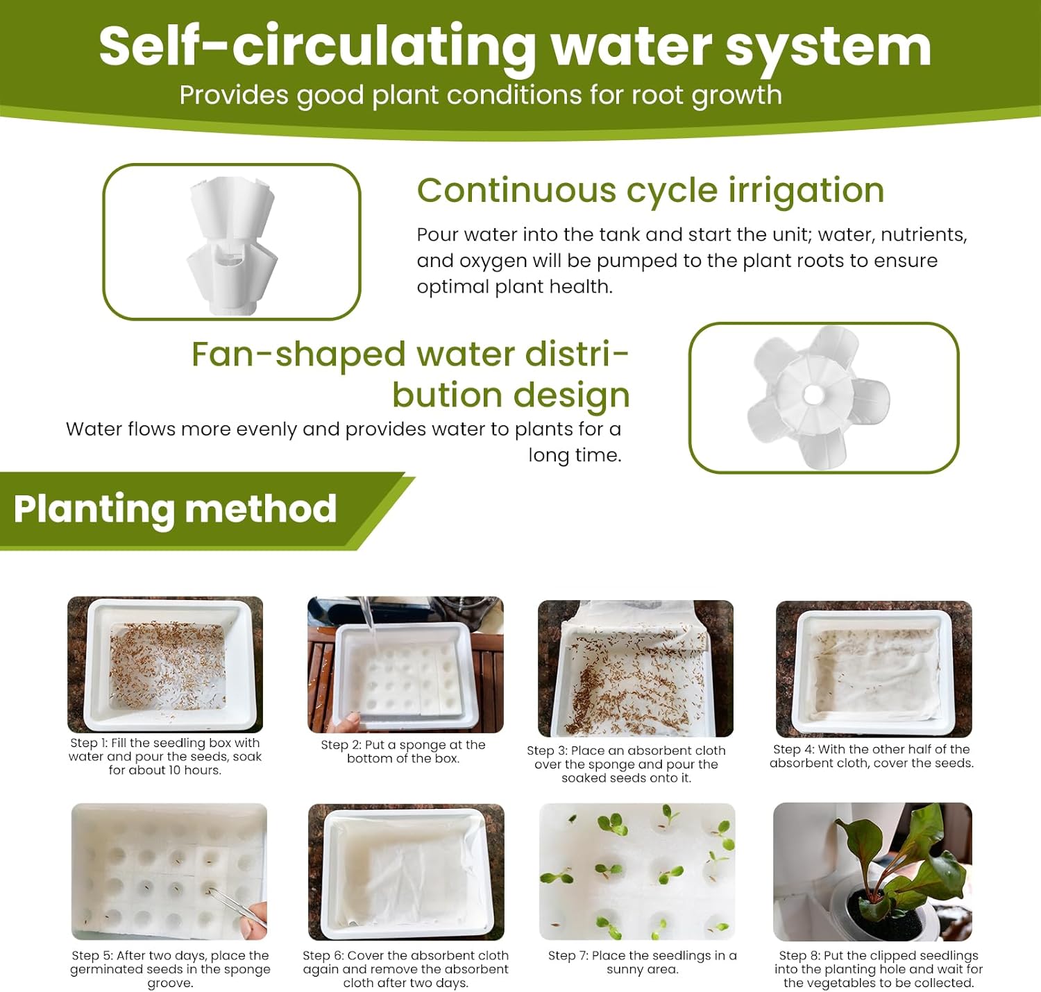 - 50L water capacity: Automatic water circulation from top to bottom and timed watering can make better use of water and reduce water waste. Greatly increase the oxygen flow to the root zone, provide high productivity and ease of use, and promote plant growth