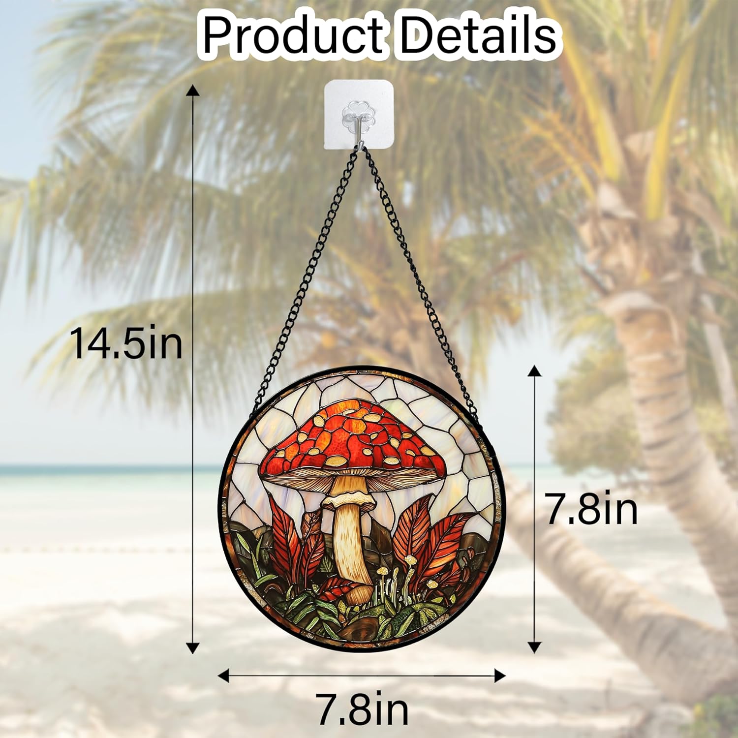 Stained Glass Window Hanging, Big Red Mushroom Suncatcher for Doors Home Sun Catchers Decoration and Christmas, Mother's Day Birthday Gifts for Women, Men, and Mom 7.8 in