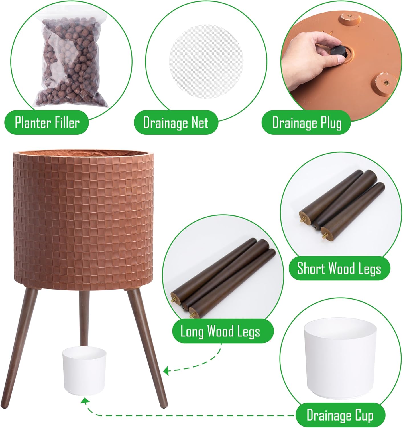 - Sturdy Wooden Legs: Supported by sleek wooden legs, this planter offers a stable base and enhances its overall aesthetic appeal.