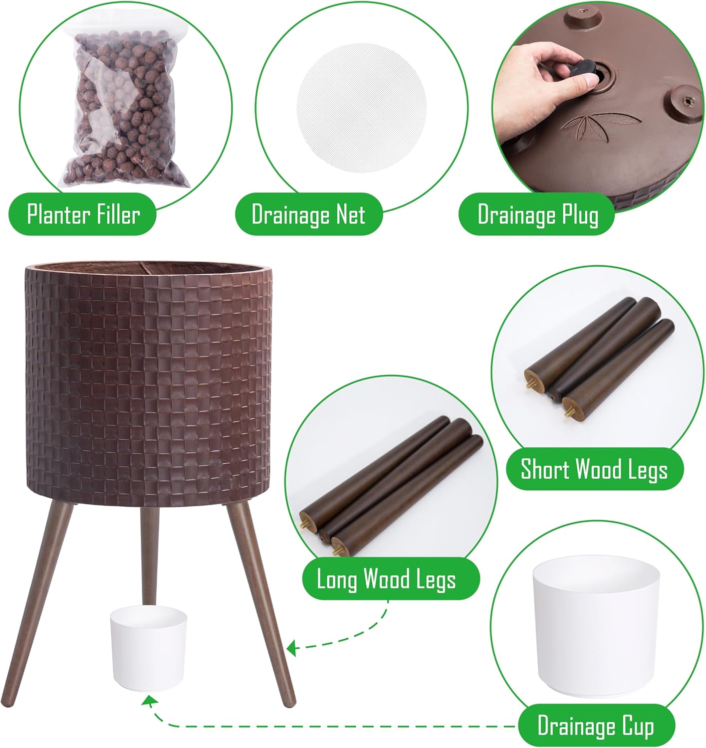 - Sturdy Wooden Legs: Supported by sleek wooden legs, this planter offers a stable base and enhances its overall aesthetic appeal.
