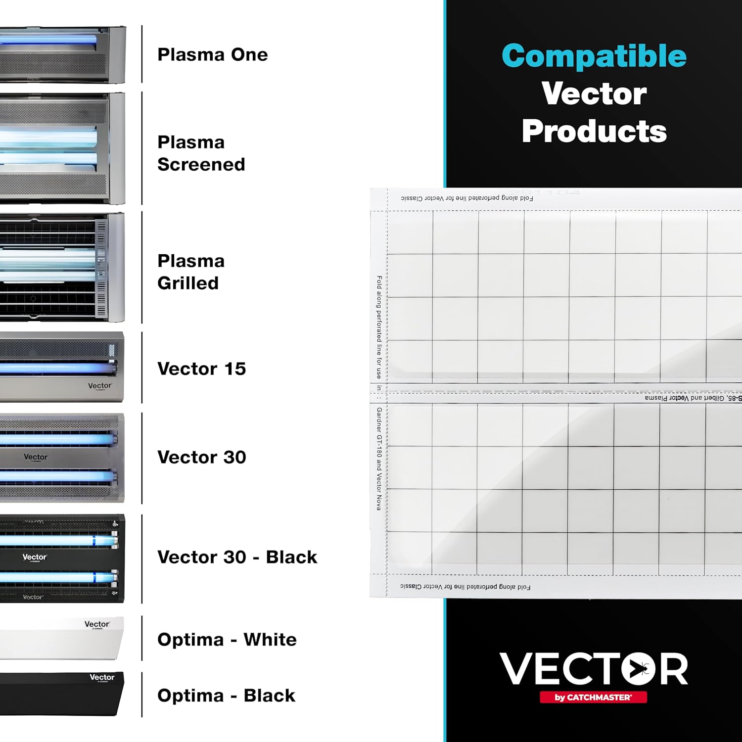 - GLUE BOARD REFILLS FOR UV TRAP: This set includes 12 replacement glue boards with perforations to create 24 glue boards compatible with Vector Fly Light Traps, including the Vector Classic, Vector Plasma Grill, Vector Plasma Screened, Vector Plasma One, Vector 15, Vector 30, and Vector Optima. The Vector Light Traps are sold separately.