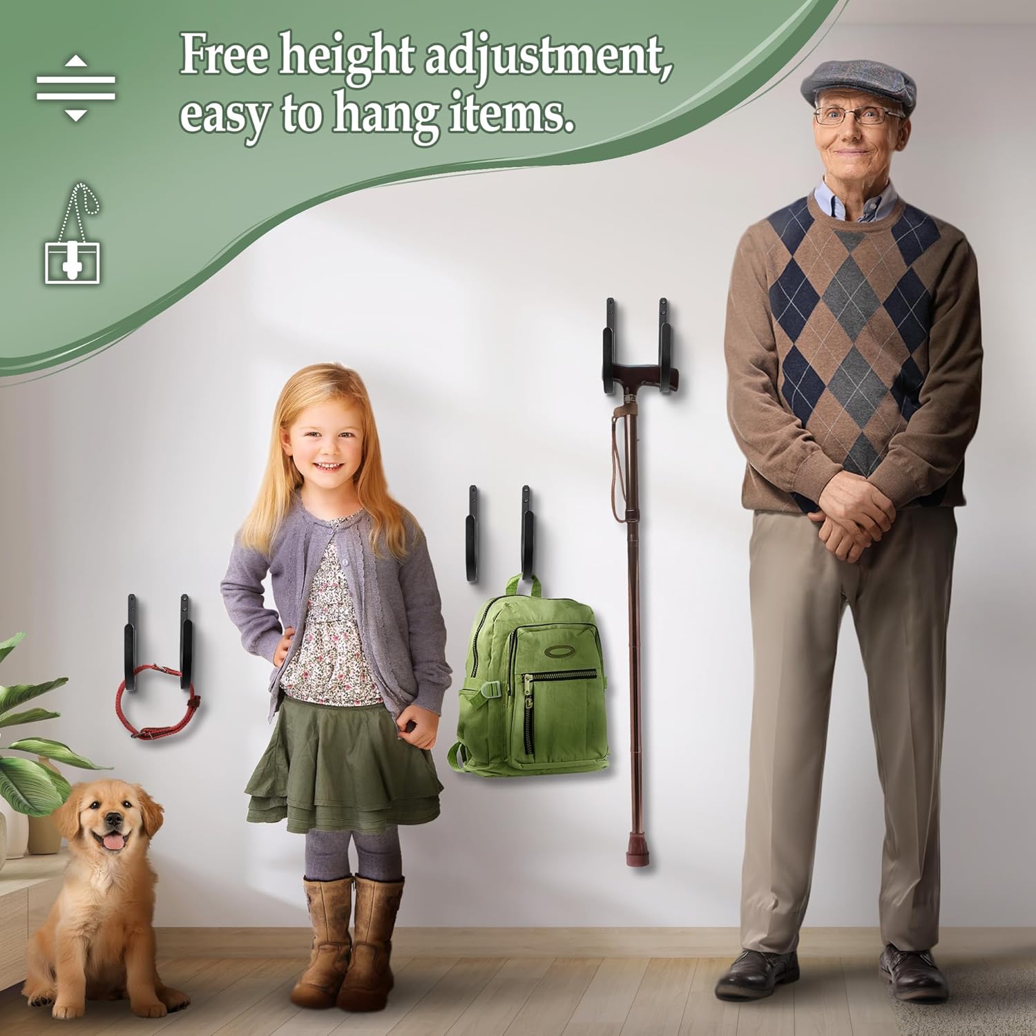 - Our wall-mounted hose hangers are designed for stability, capable of securely holding up to 150 feet of hose. Each hanger stands 5.9 inches tall and 5.1 inches deep, with a tube thickness of 0.4 inches. The adjustable spacing between hooks allows for customizable storage solutions.