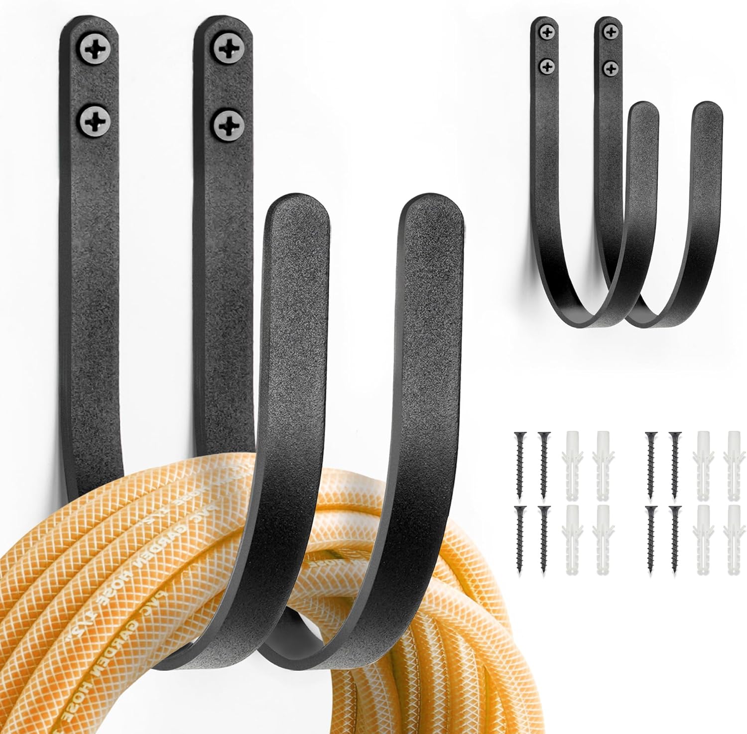 Hose Holders Wall Mount - Heavy-Duty Metal Garden Hose Hanger for Outside - Rust-Proof Hanging Hose Rack Hook Mount for Water Hose (4PCS)