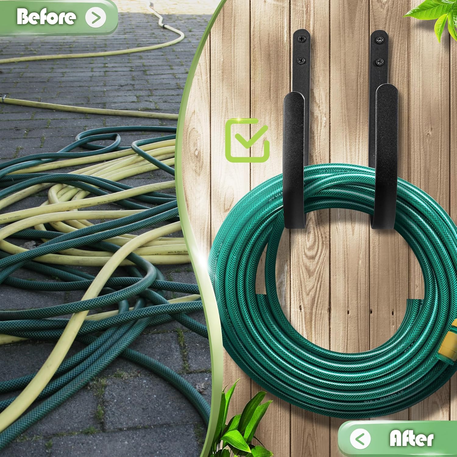 - These hose holders keep your hoses neatly stored and hanging, preventing kinks and tangles. They help maintain hoses in perfect condition, ensuring they remain well-organized and saving space. The package includes two hose holders, four screws, and four plastic wall plugs for easy installation.