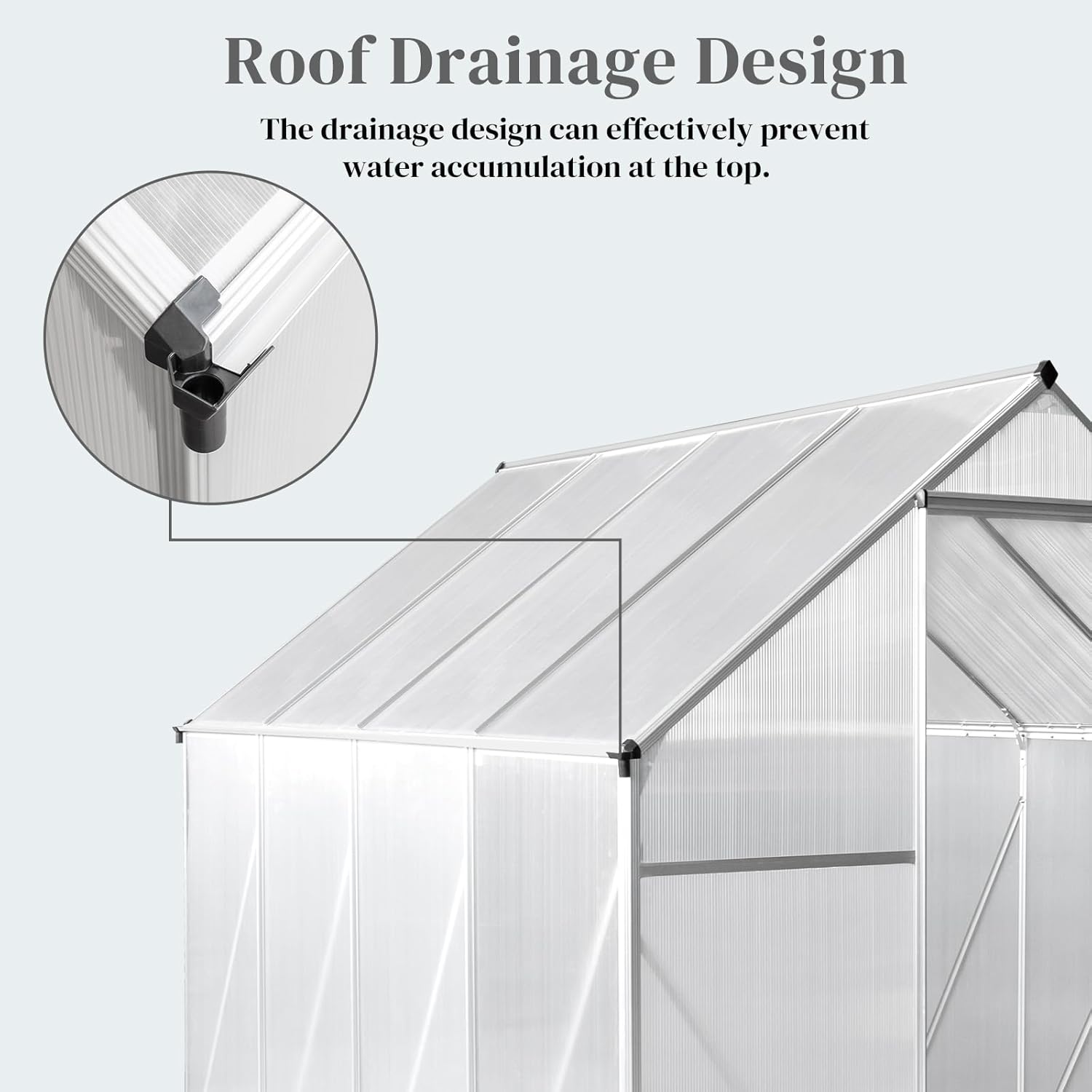 - VINGLI 6*8FT Polycarbonate green house - Perfect for year-round gardening, this spacious outdoor greenhouse features durable polycarbonate panels that provide optimal light transmission while protecting your plants from harsh weather conditions.